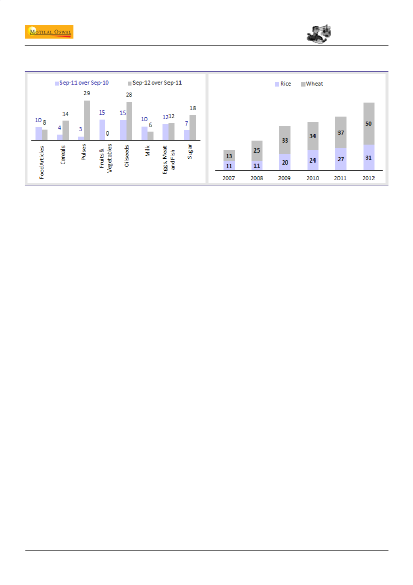 2011 in the prices of cereals (4% to 14%), pulses (3% to 29%), oilseeds (15% to 28%)