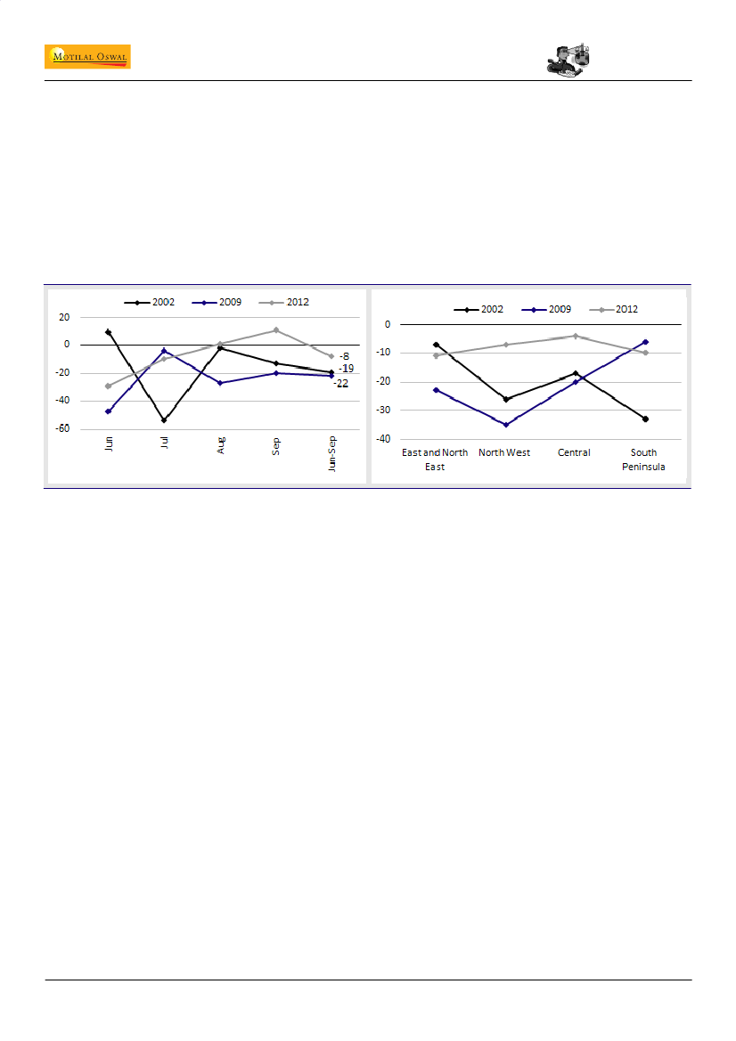 The magnitude of rainfall deficiency was limited in 2012 as compared with the 2002 and 2009 droughts. However, agri GDP