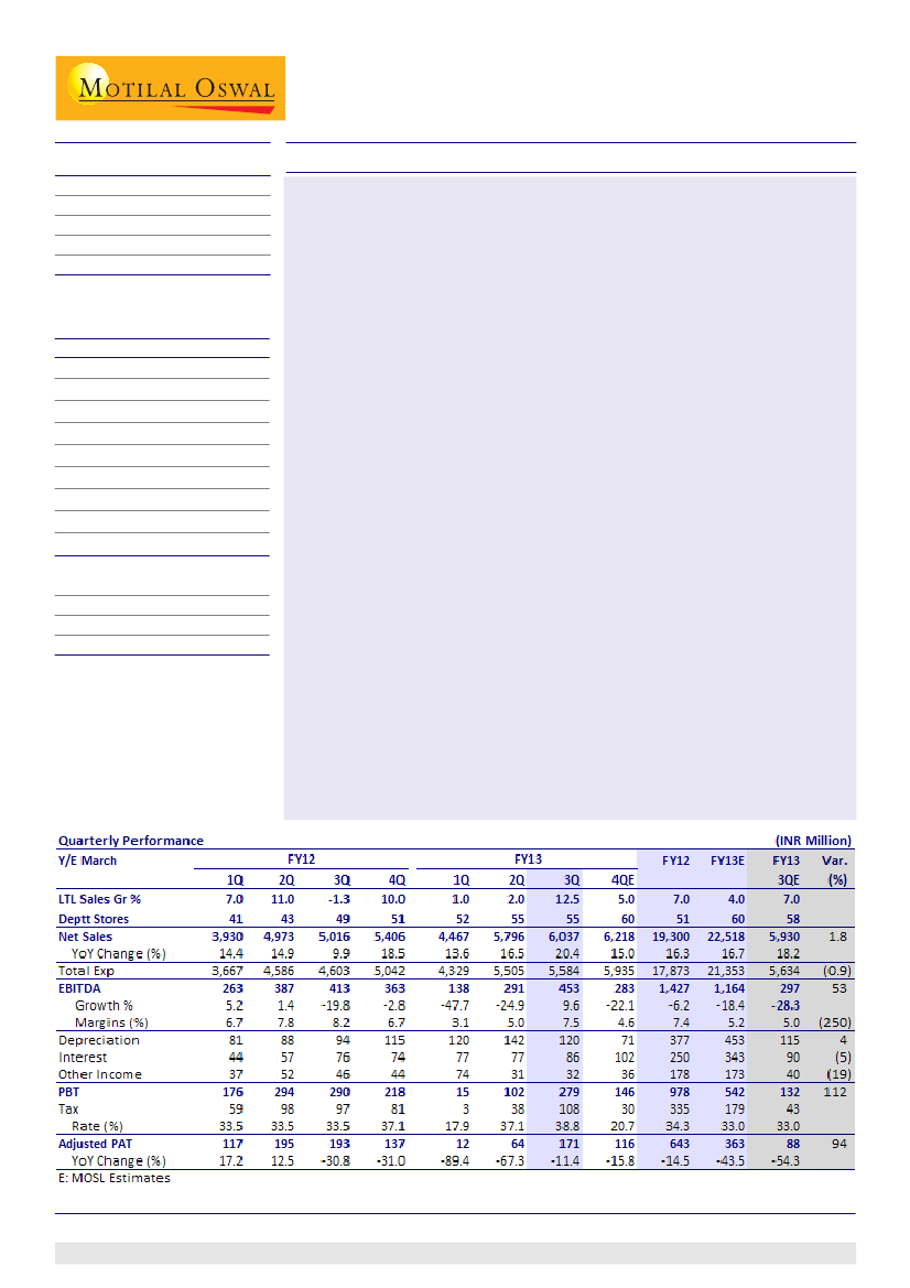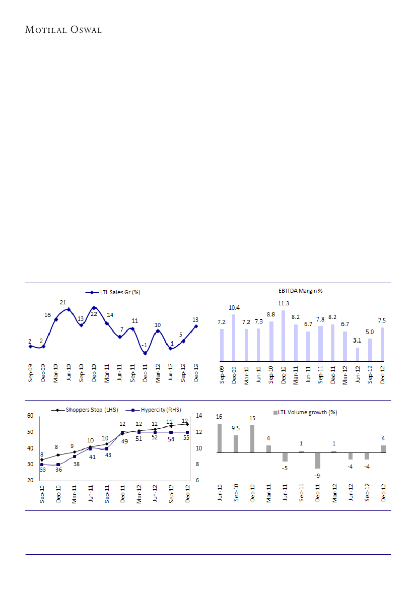 HyperCITY Retail: LTL growth improves to 3%; 3QFY13 loss at INR236m