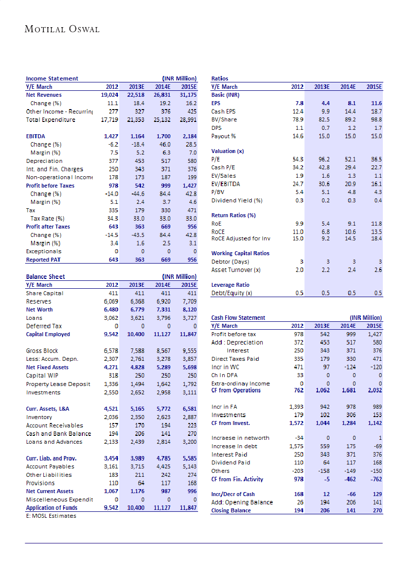 in standalone PAT to INR171m (v/s our estimate of INR88m).