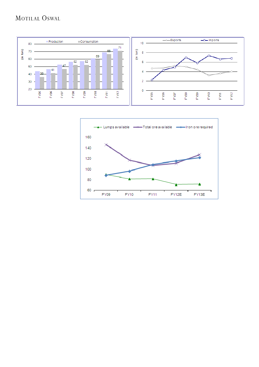 respectively. India is still a net steel importer of 2.8m tons. The growth in