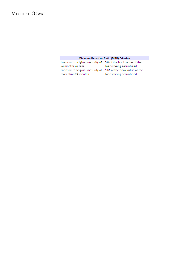 securitization norms for NBFCs. The final guidelines are largely in line with