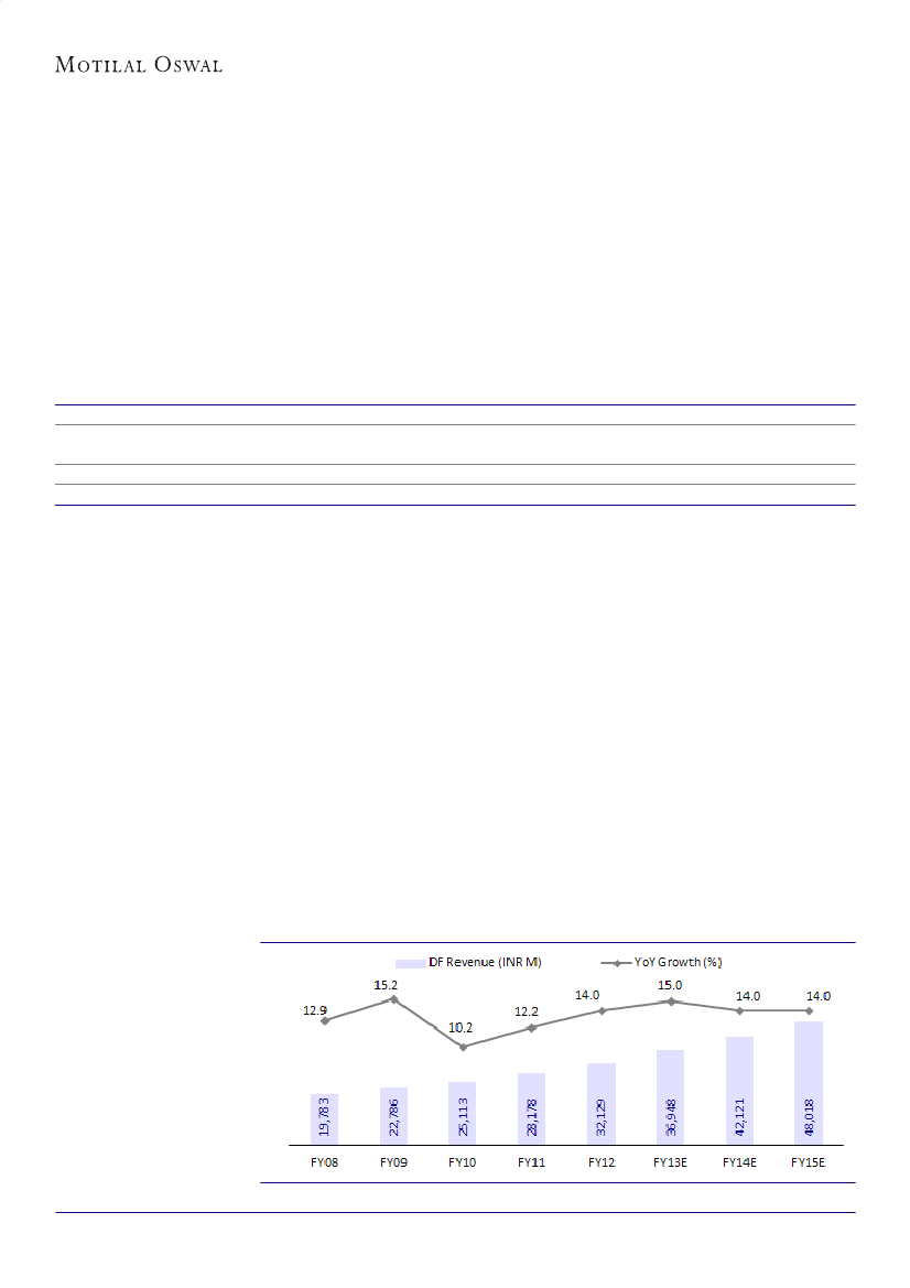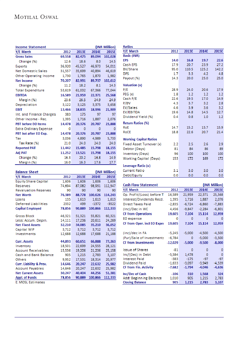 performance, our core EPS est for FY13E has witnessed an upgrade of 2%, while
