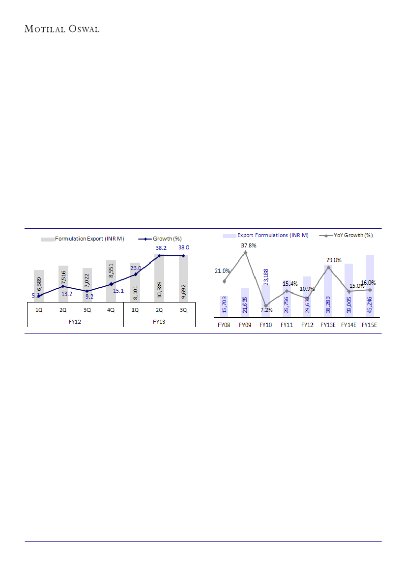While export formulations grew 38% YoY in 3QFY13, Cipla's core quarterly