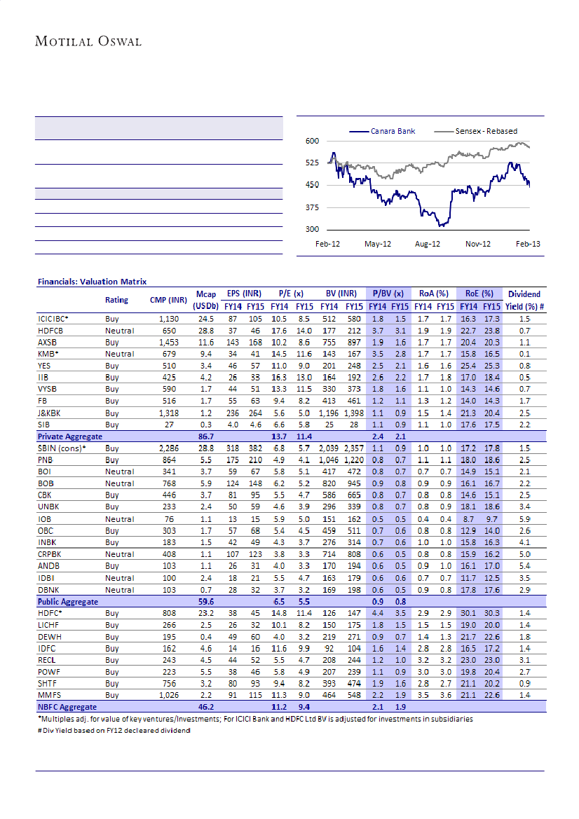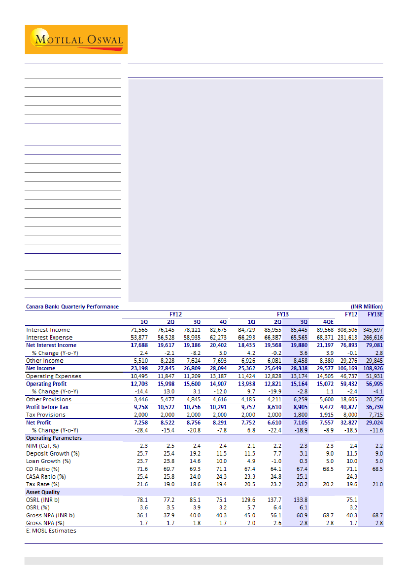 Canara Bank's 3QFY13 PAT of ~INR7.1b (-19% YoY and +7% QoQ) was 6% above our
