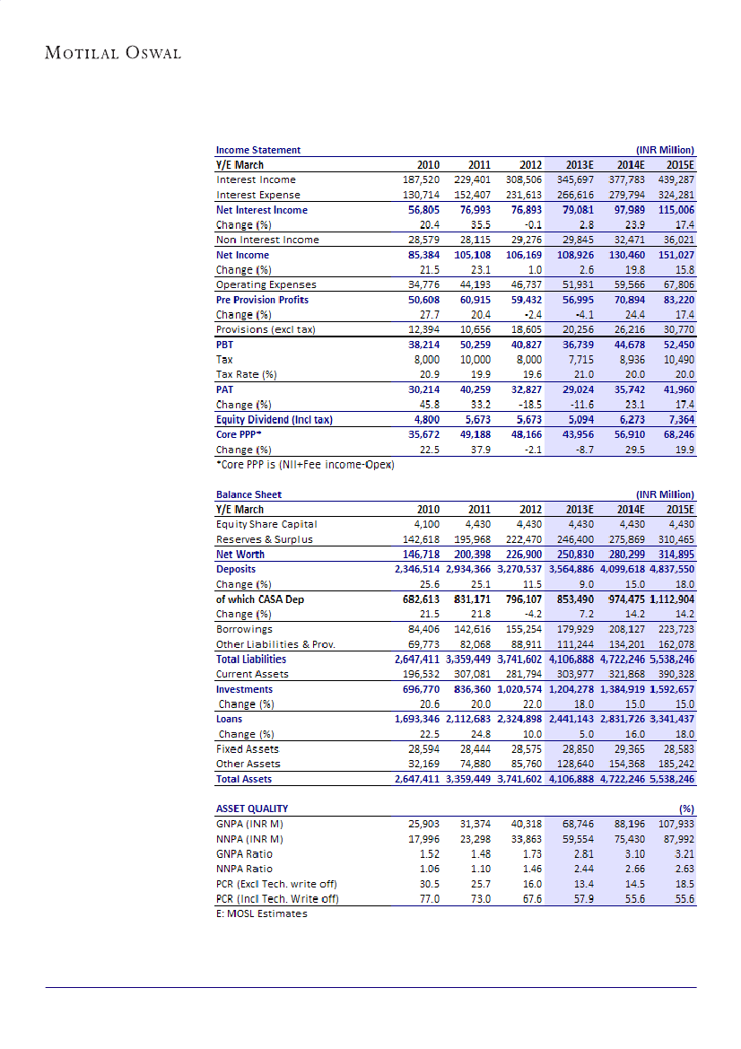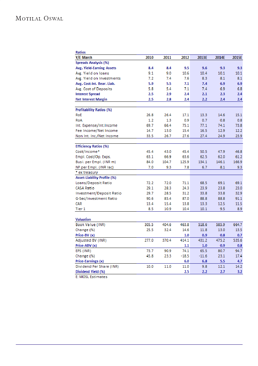 will aid margin improvement in FY14. RoA and RoE will be healthy at 0.8%/16%
