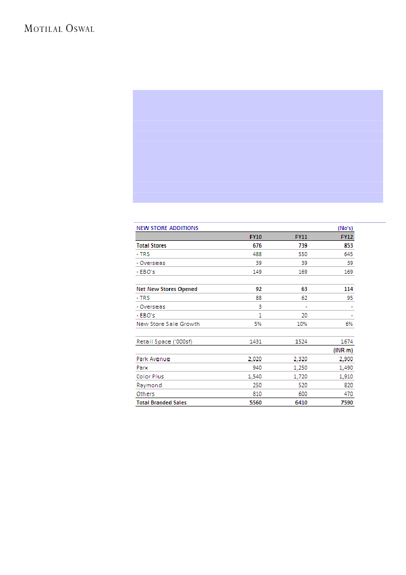 Raymond added 269 new stores (net) over FY10-12, taking its retail store
