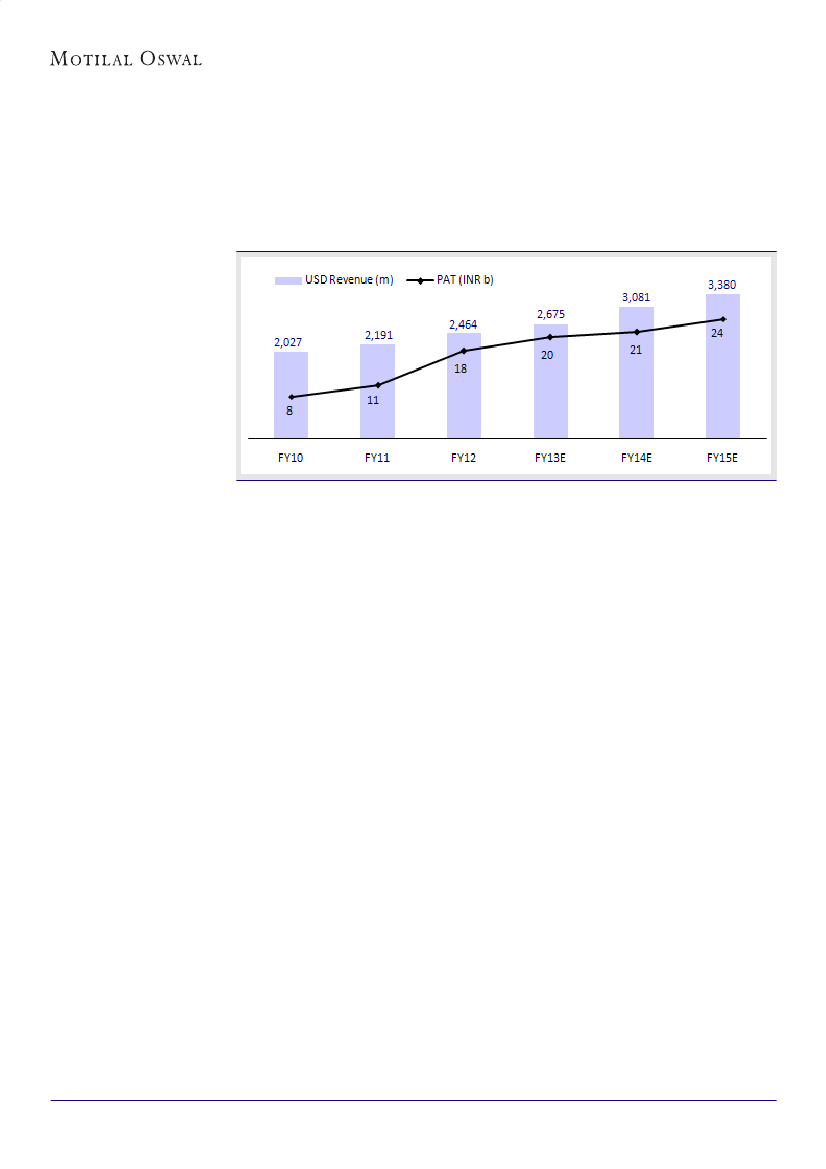 revenues at 19-23% over FY09-12. Expect TECHM to grow steadily despite