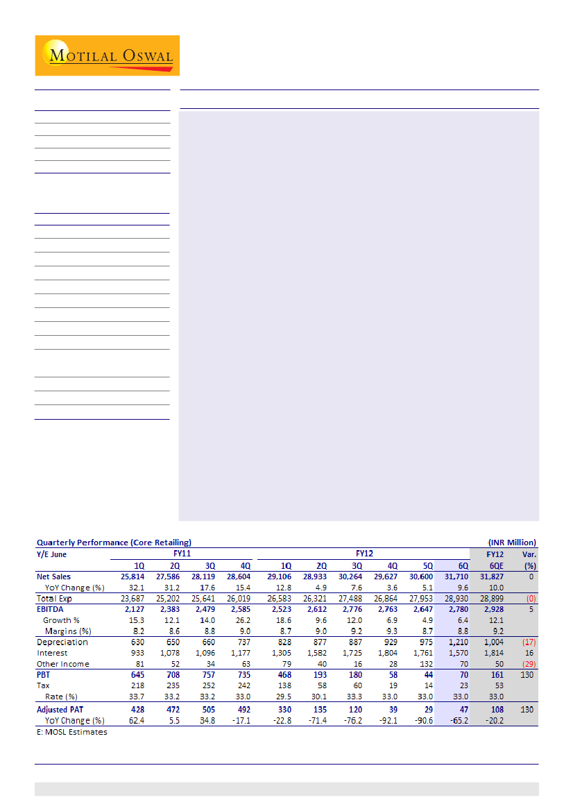 Pantaloon Retail's (PF) 6QFY12 results are below estimates, with continued
