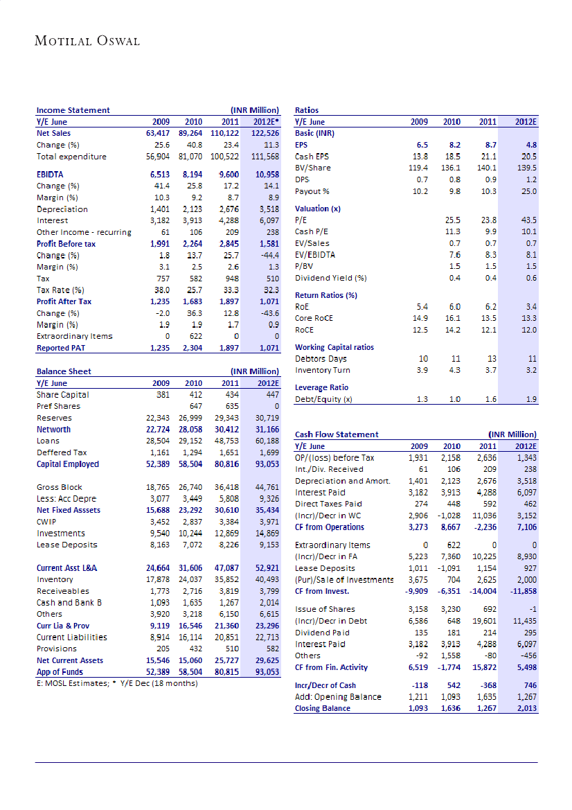Core retail debt as on Dec 31, 2012 stood at INR54b. Management has
