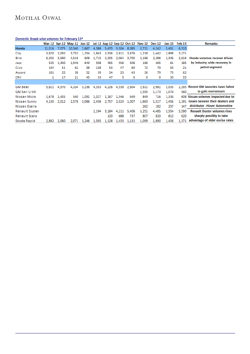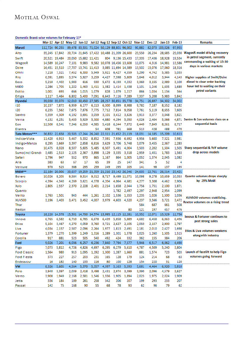 Domestic brand-wise PV volumes for February 2013 .................... 15
