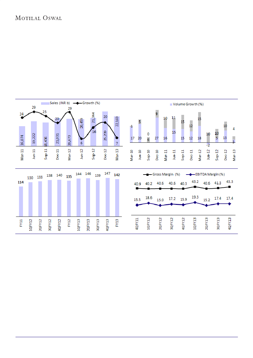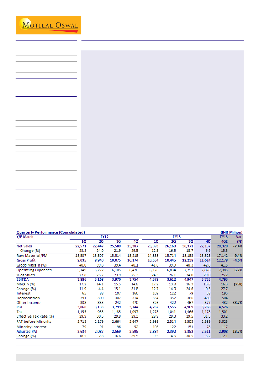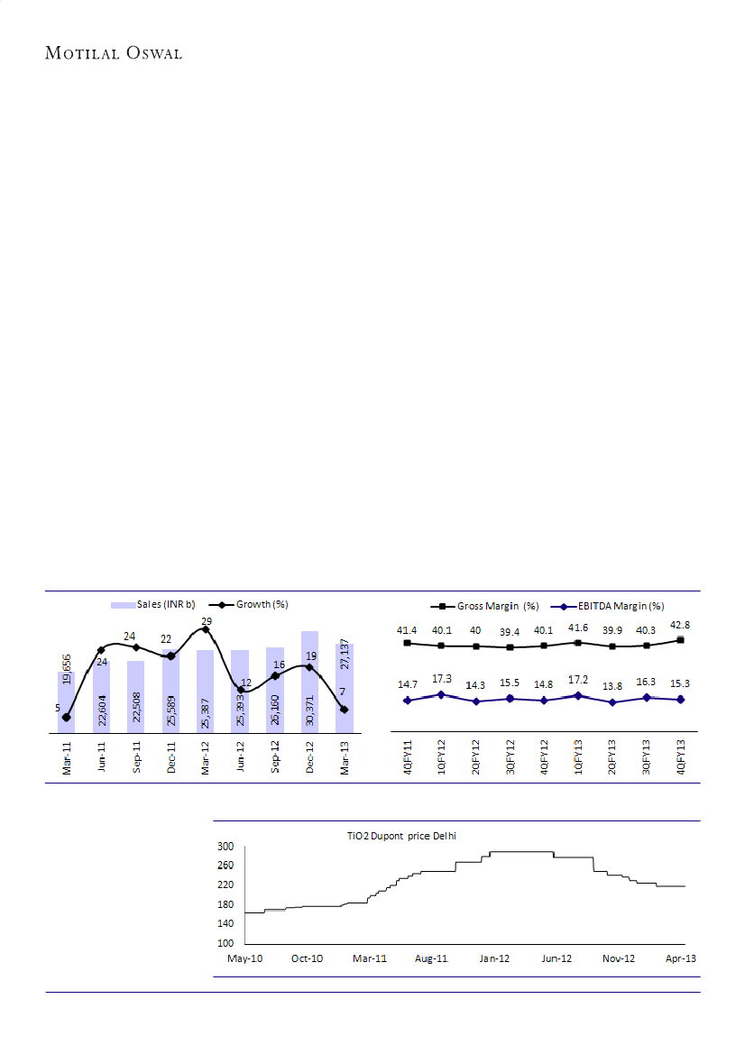 in 4QFY13 (FY12 as base = 100). RM price trends are expected to remain