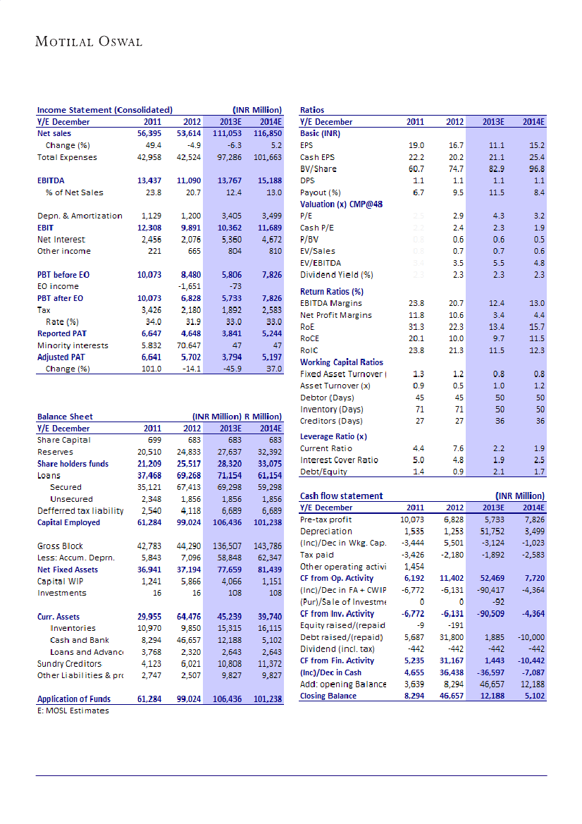 CY14E EPS by 21% to INR15.2/share. The stock trades at 4.8x CY14E EV/EBITDA,