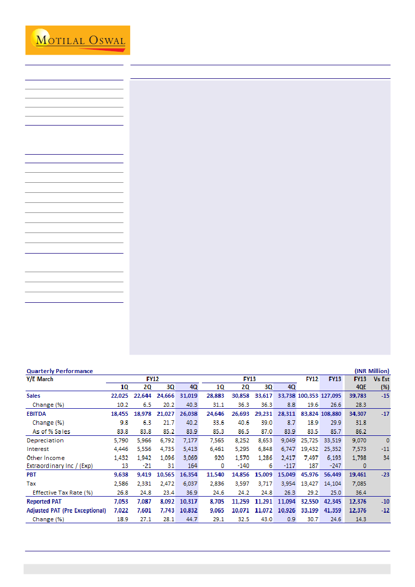 4Q. Capitalization for 4Q/FY13 was higher than our estimate of INR65b/