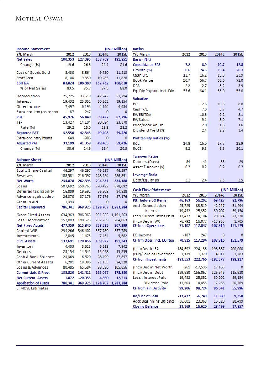 EPS of INR10.7/INR12.8 for FY14/FY15. The stock trades at 8.8x FY15E EPS and