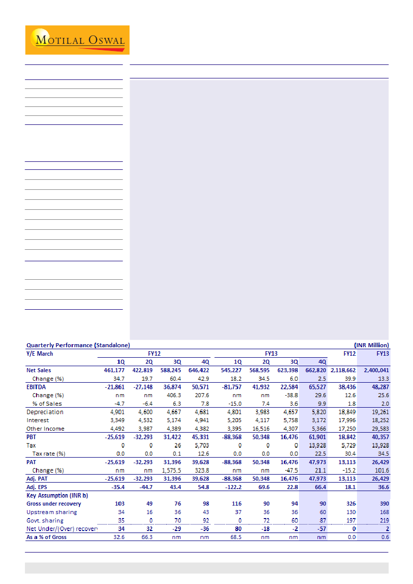 tune of INR2.1b, (b) inventory loss of INR3.3b, and (c) under-recovery sharing