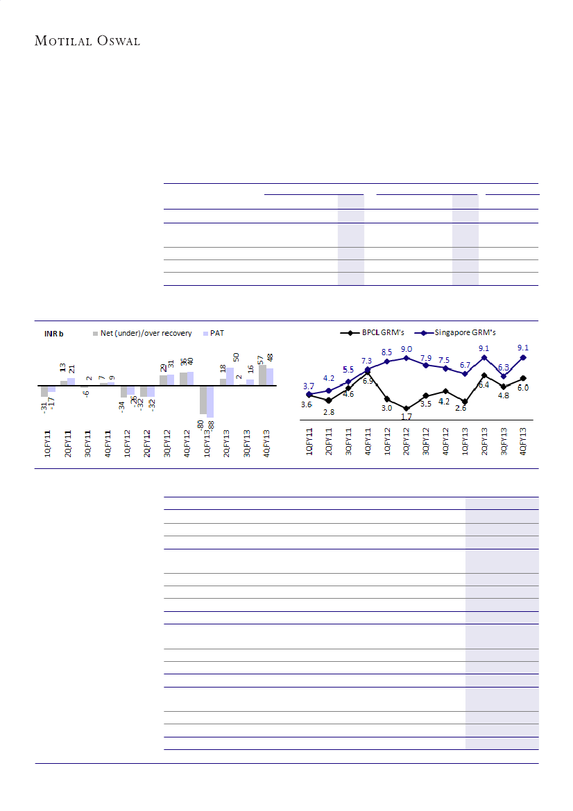 BPCL to report PAT of INR26b for FY13. For FY14, we model subsidy sharing as: