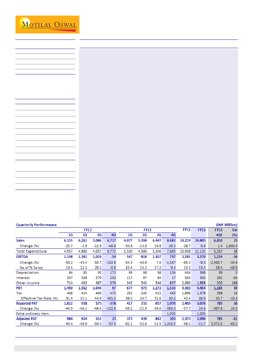 v/s 17.2% in 3QFY13. The sharp margin deterioration was due to write-off of