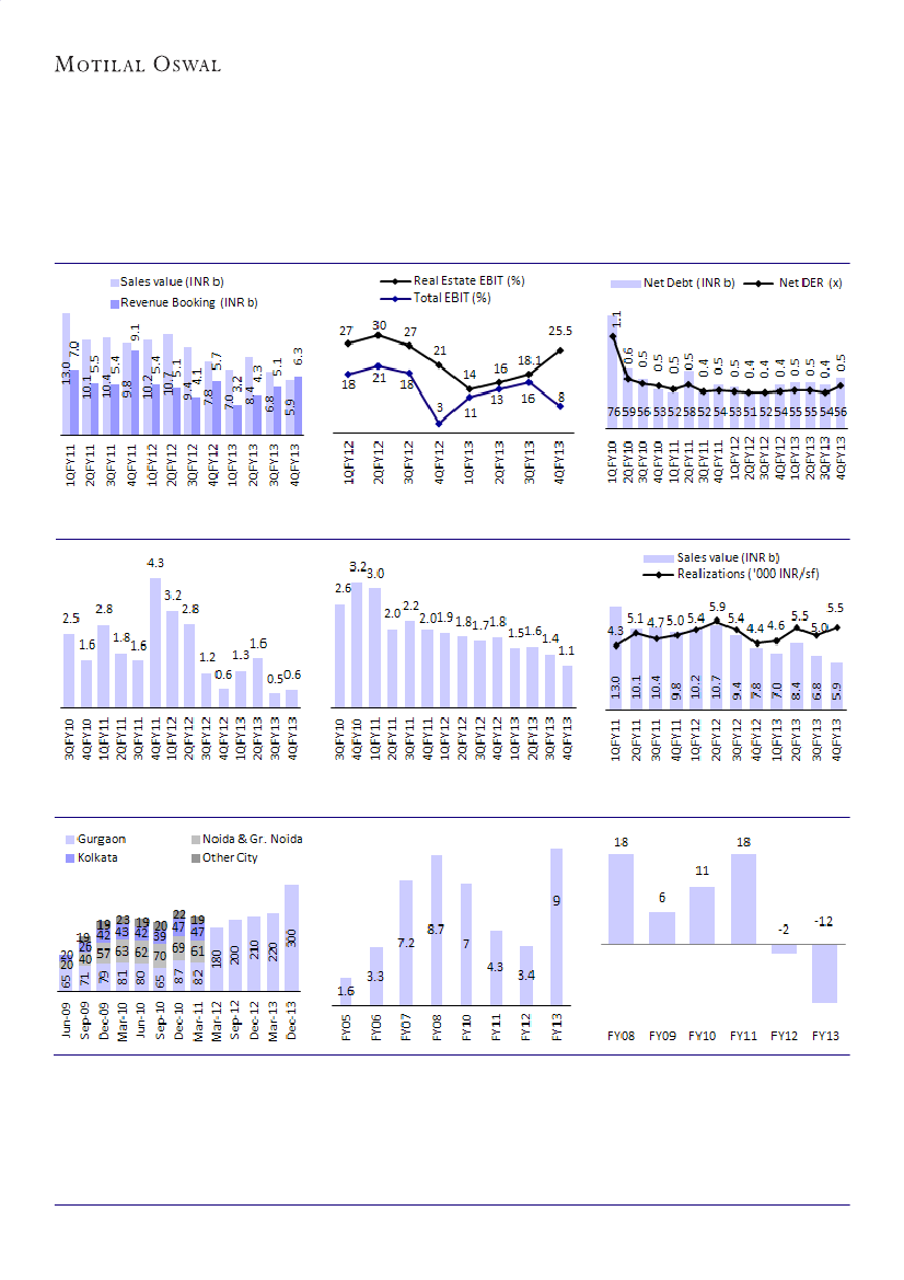 v/s 7.8msf in FY12. Lower launches led to weaker presales of INR28b v/s our
