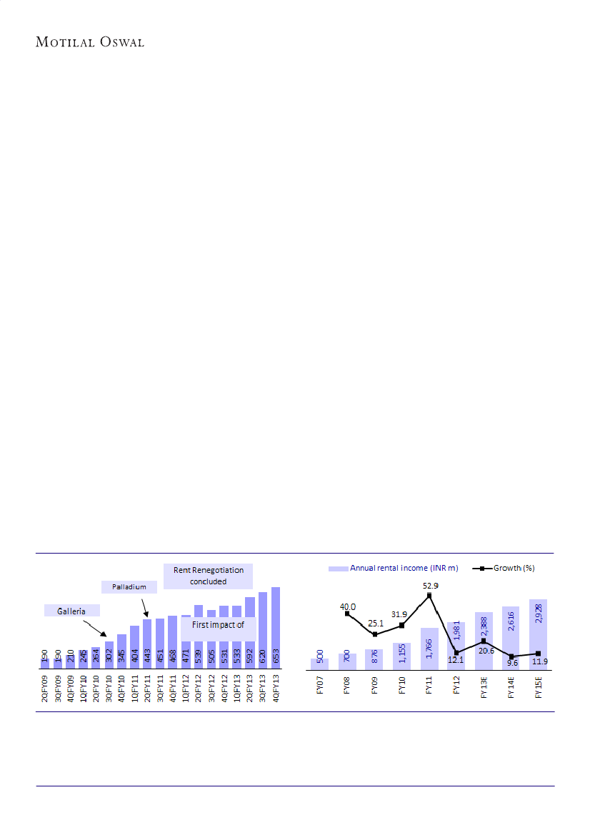 +4%QoQ and +17% YoY to INR212/sf/m in 4QFY13. FY13 rental at HSP stood at