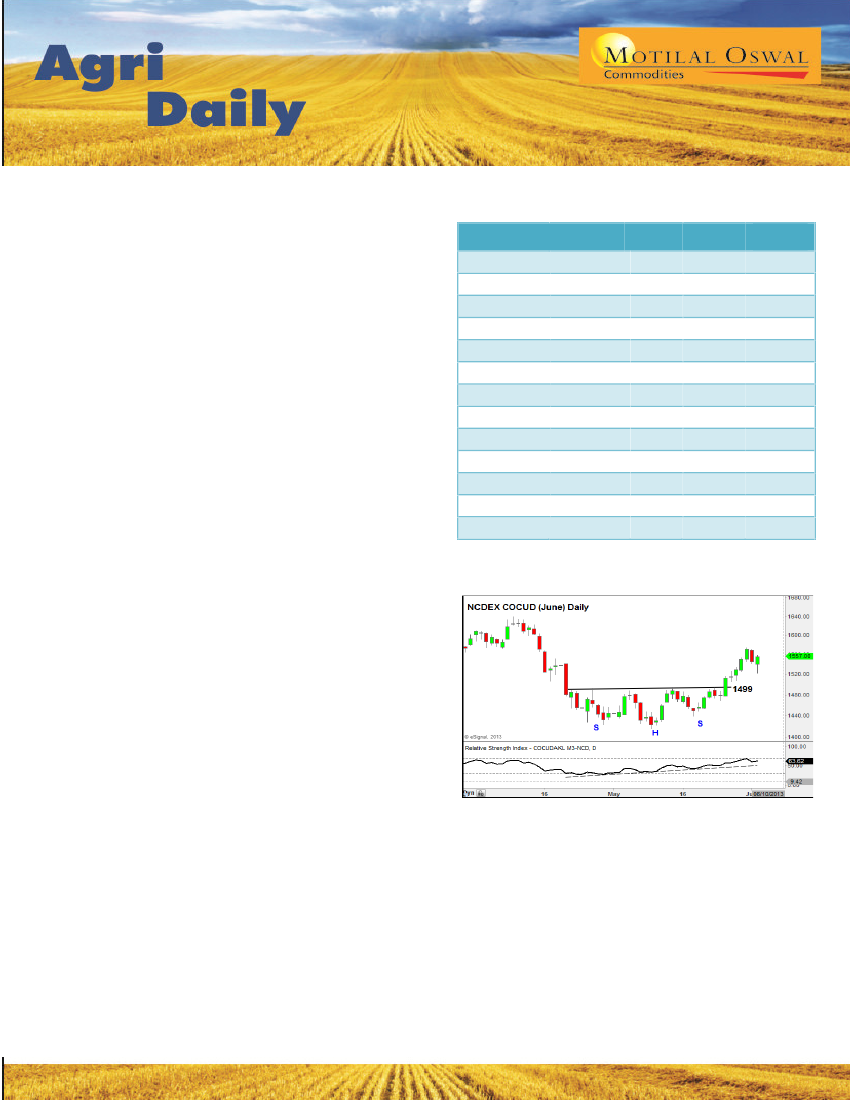 June. NCDEX Jun Jeera settled at Rs.13150, up 140