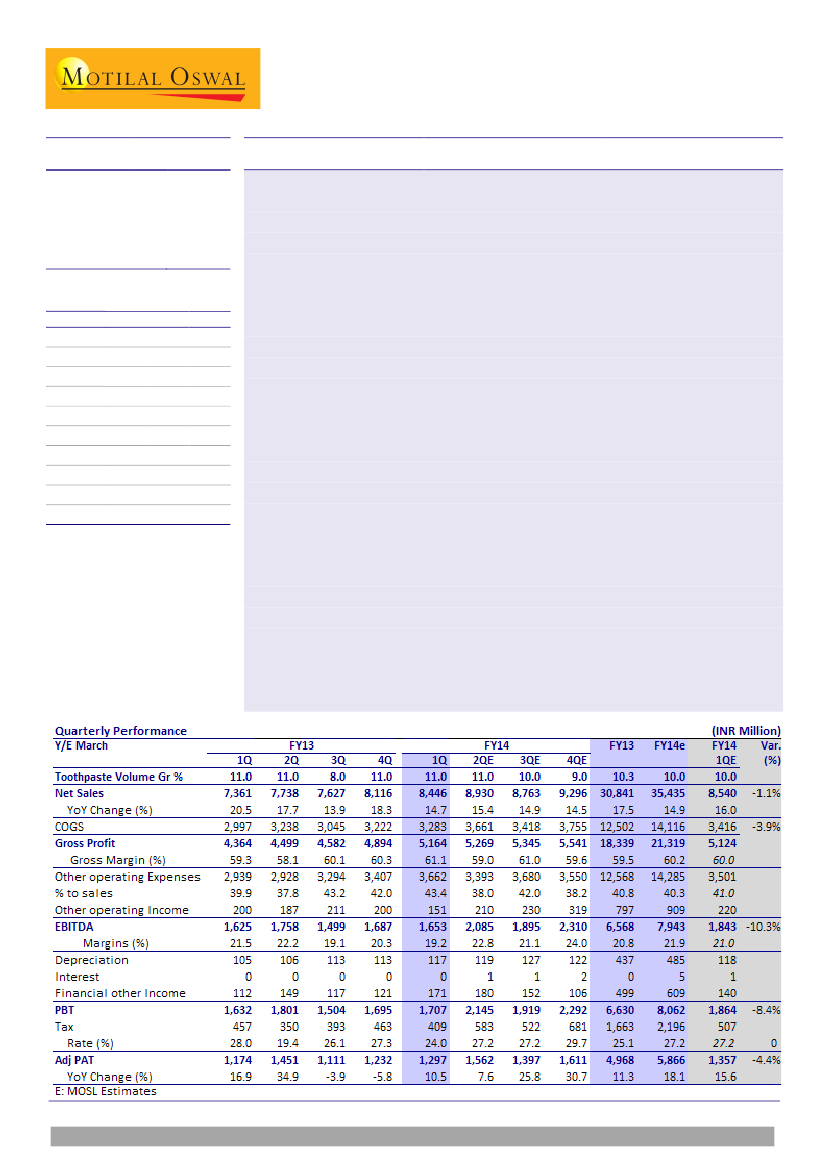 1QFY13 and 14% in 1QFY12). CLGT’s market share in Toothpastes increased 120bp