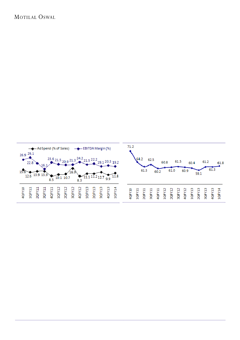 60%). However, 70bp increase in ad spends and 400bp rise in other expenditure