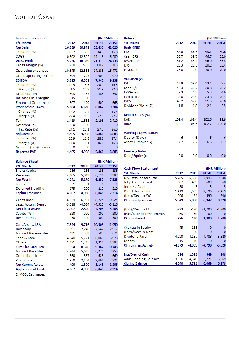EPS). The stock trades at 33.4x FY14E and 28.4x FY15E EPS. Slowdown in rural