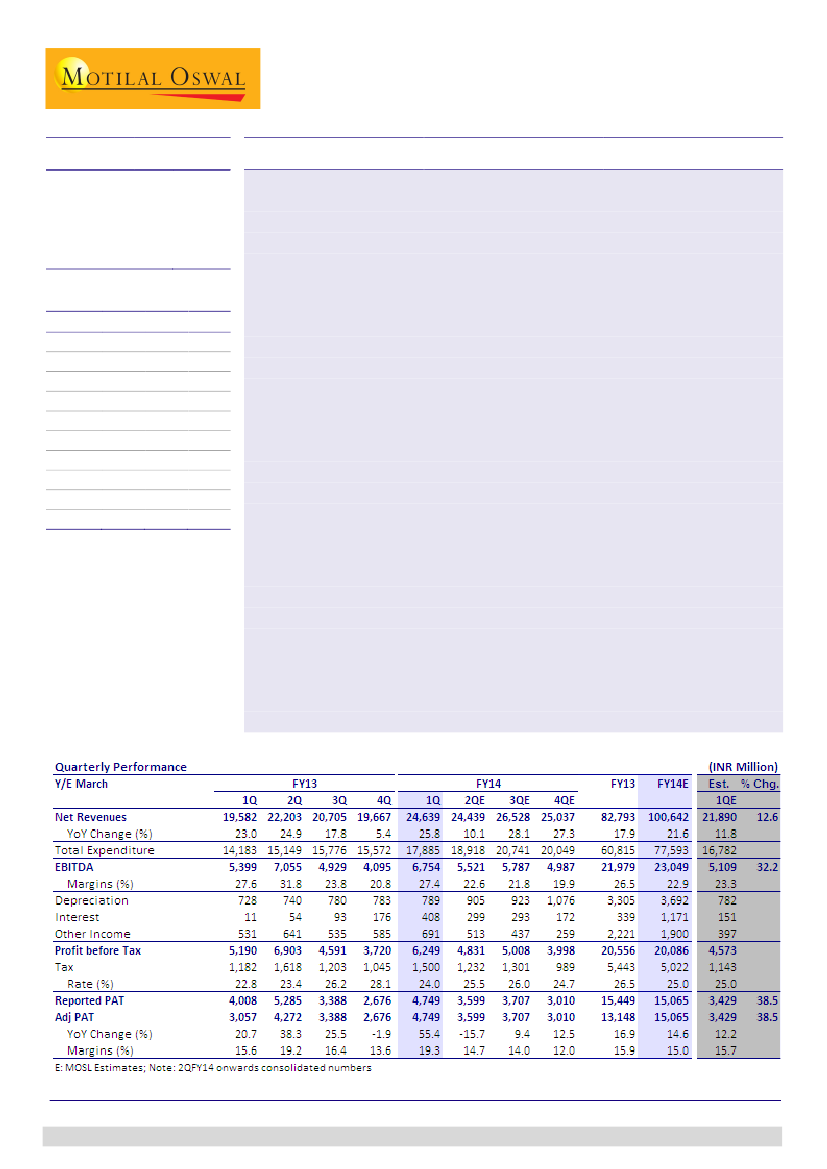 impact of DPCO 2013. Factors driving performance in 1QFY14 are also non-recurring