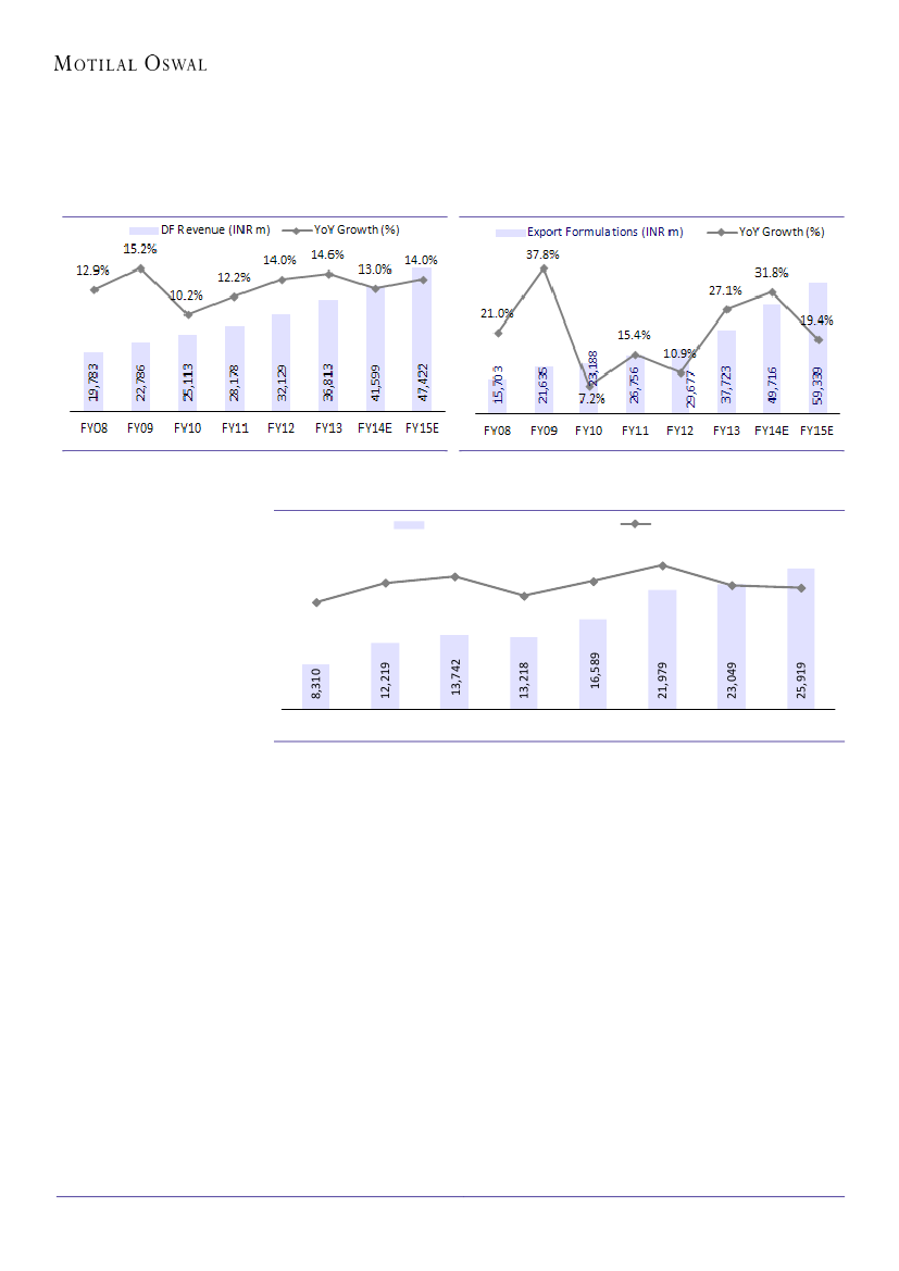 FY14, driven by export formulations. Domestic formulations’ growth is pegged at