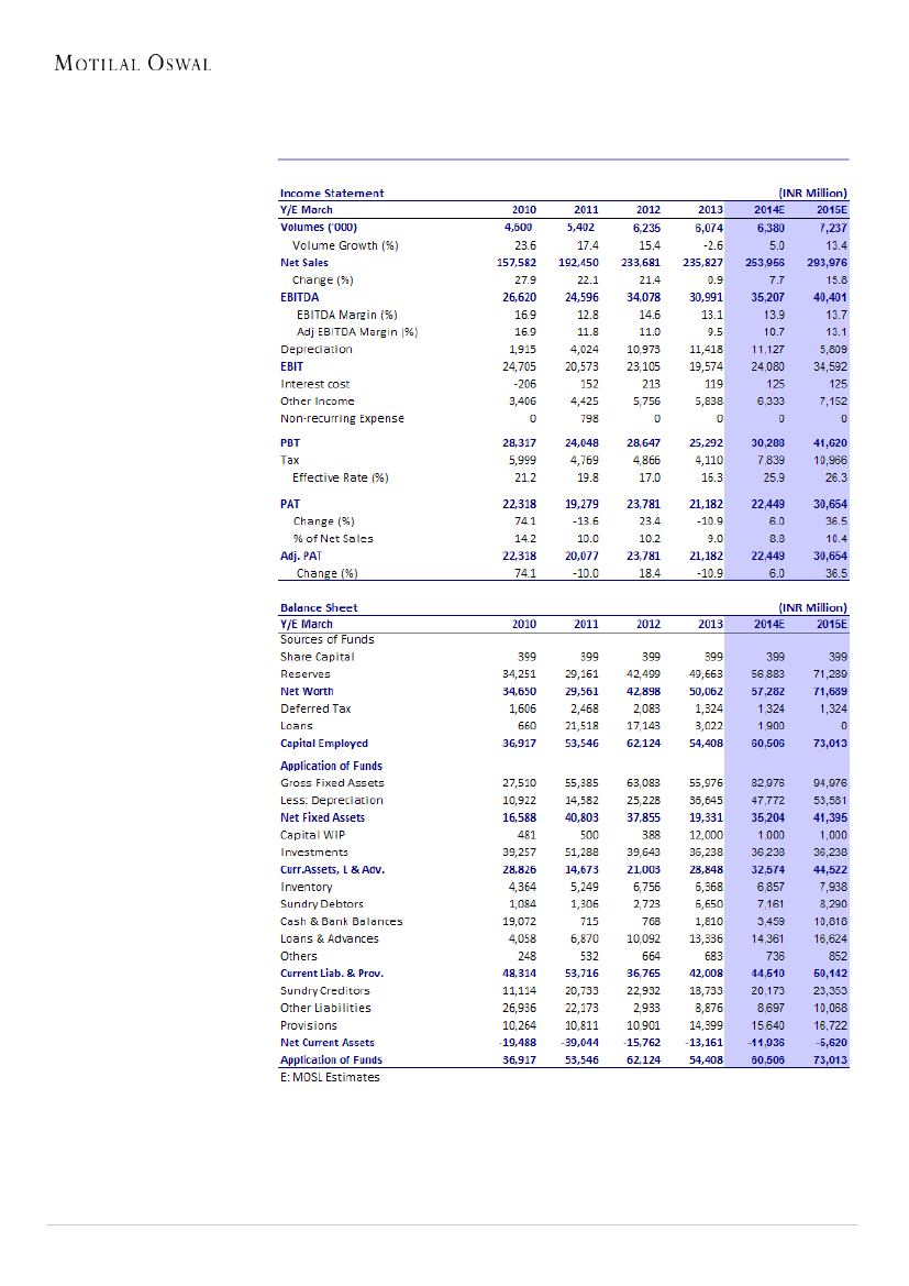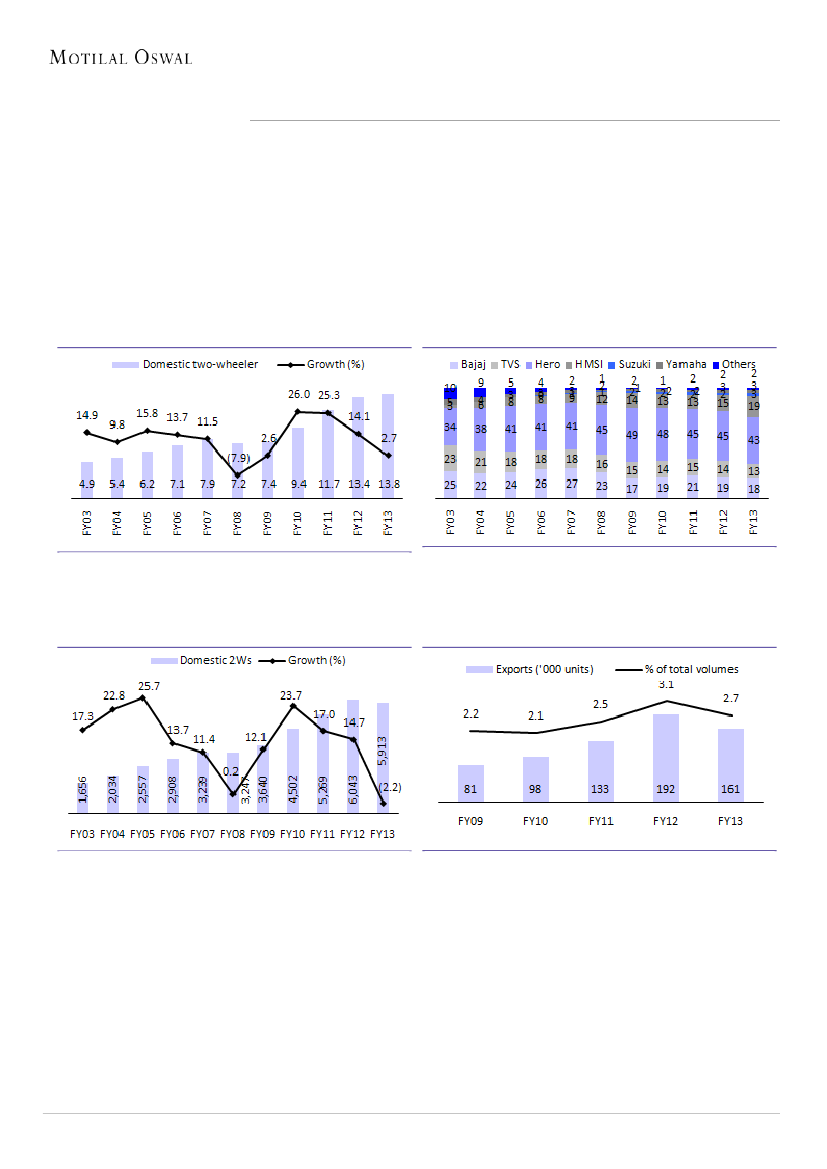We expect recovery in two-wheeler demand from 2HFY14 and believe