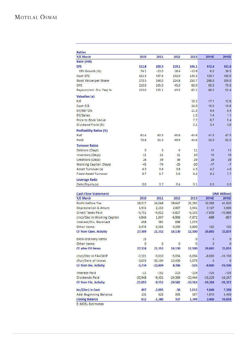 Valuations at 17.1x/12.6x FY14/FY15E EPS and dividend yield of