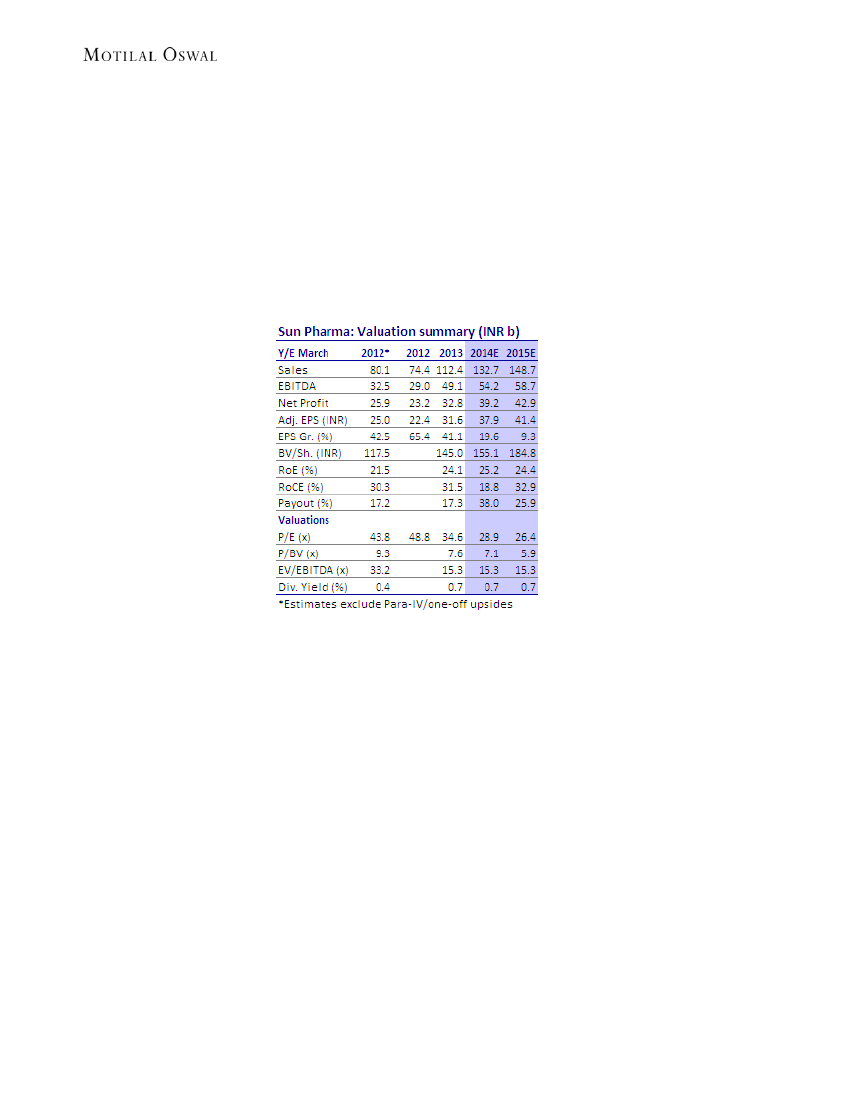 with target price of INR1040 (25x FY15 EPS + INR4 DCF value for Para‐IV