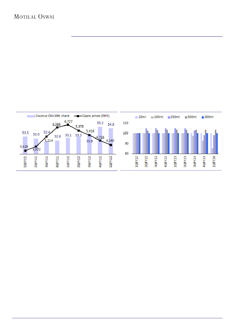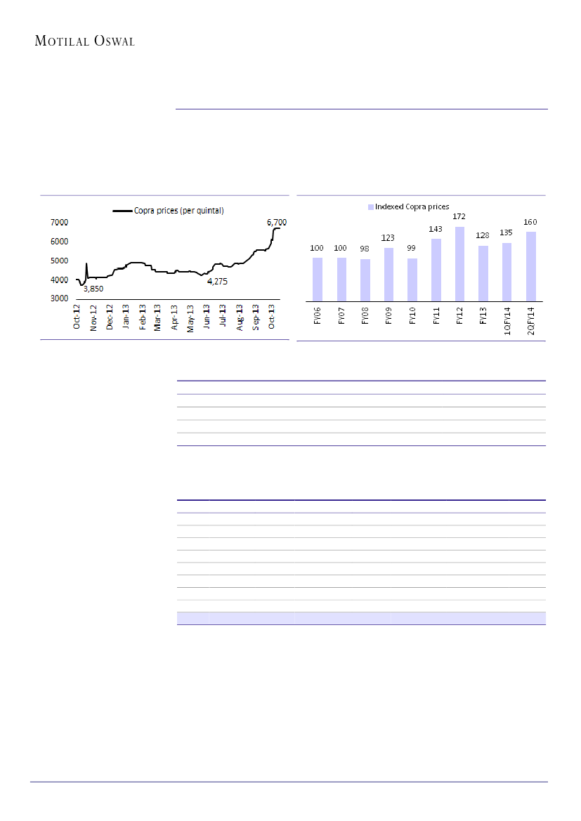 Similarly, when copra prices corrected ~40% between 1QFY12-2QFY13,