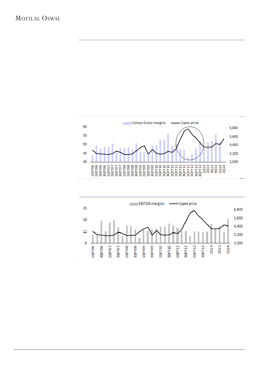During 2QFY10-1QFY12, when copra prices more than doubled, gross