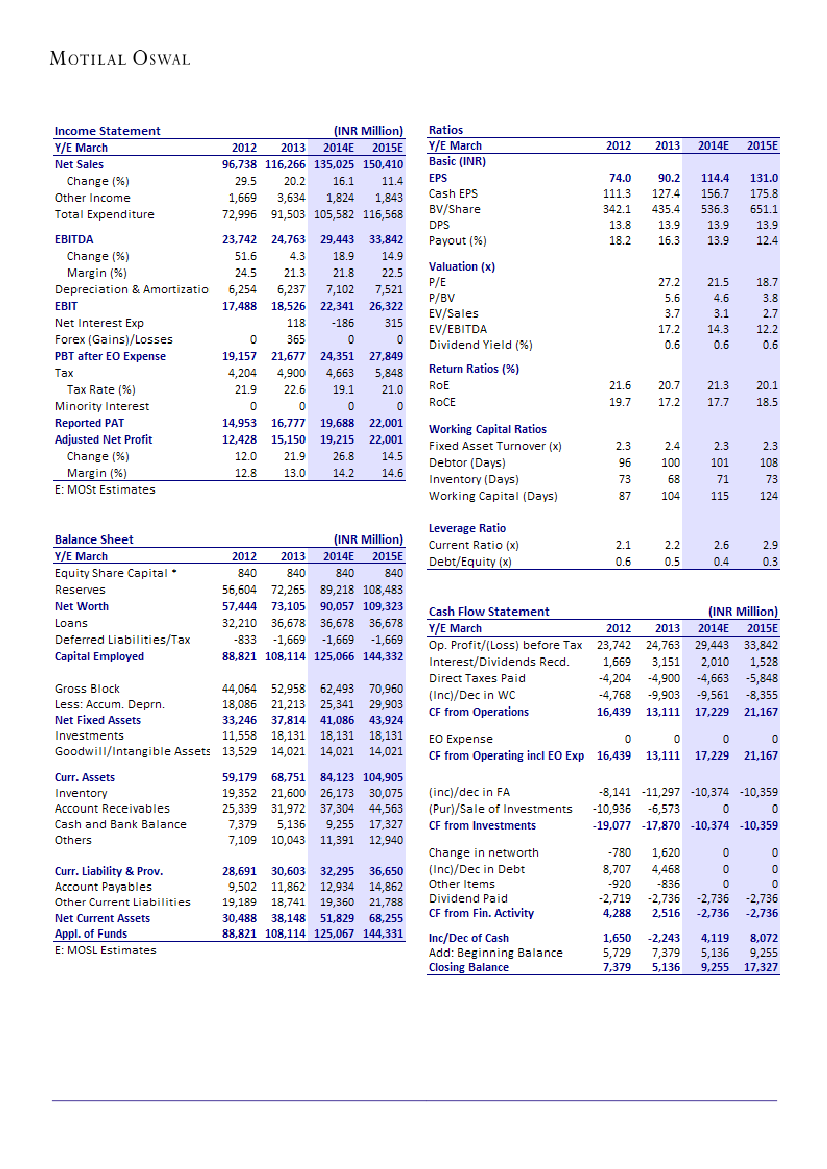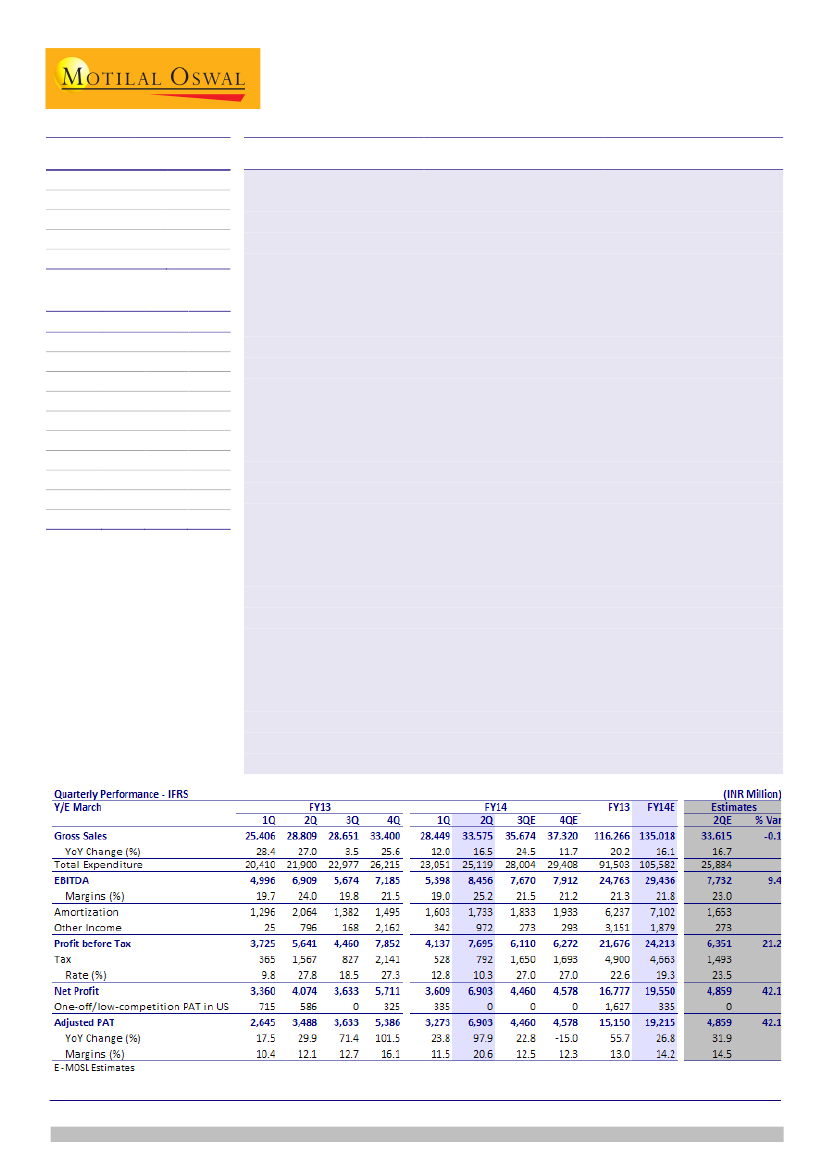 On the back of 2Q beat, we increase the FY14E/FY15E EPS by 8%/3%. The stock trades