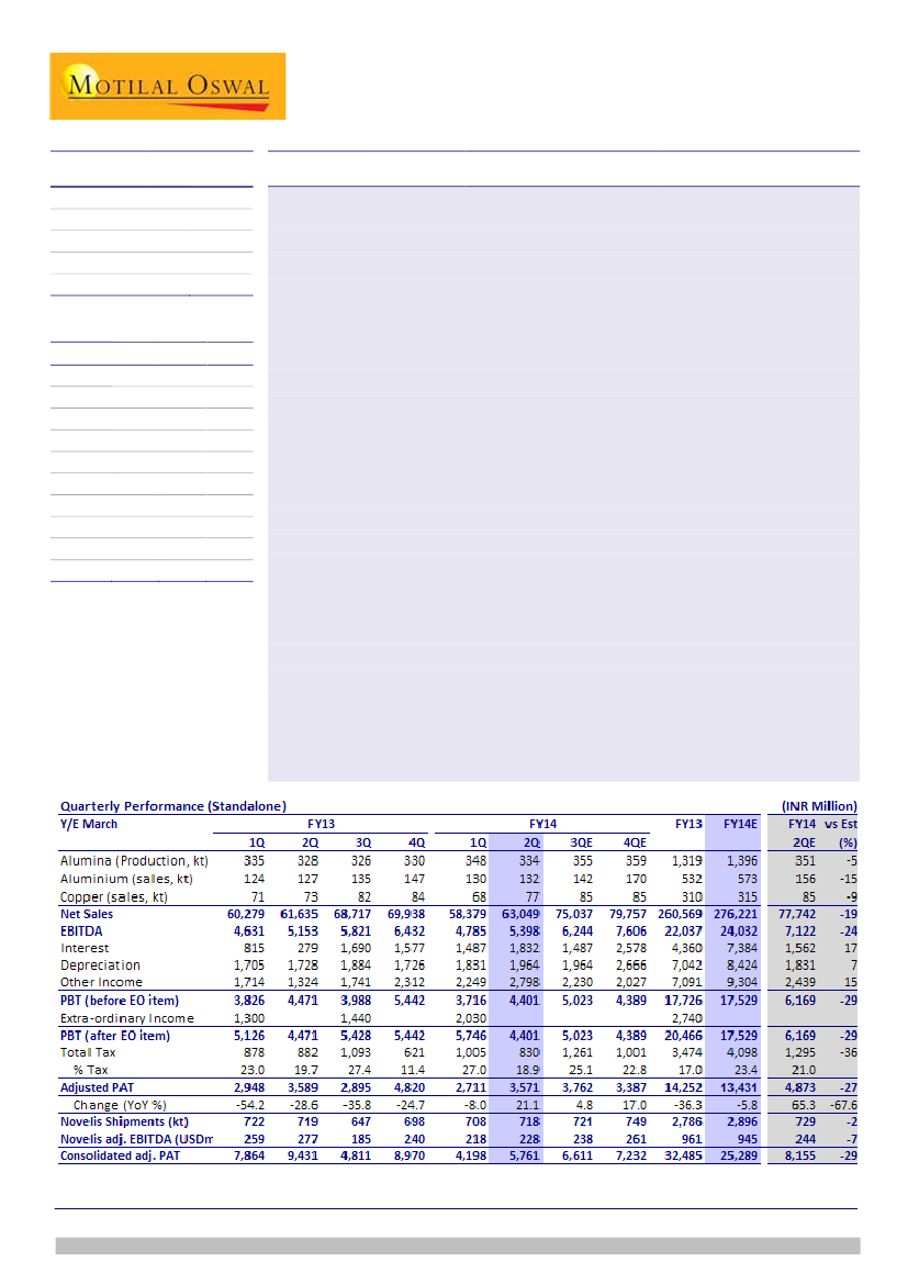 for 4Q FY14E. LME assumptions for FY15E are kept unchanged at USD2,000/t