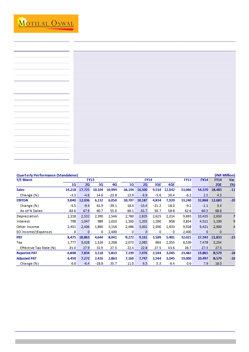 We reduce our estimates by 1.4%/3. 4% for FY14/15. We