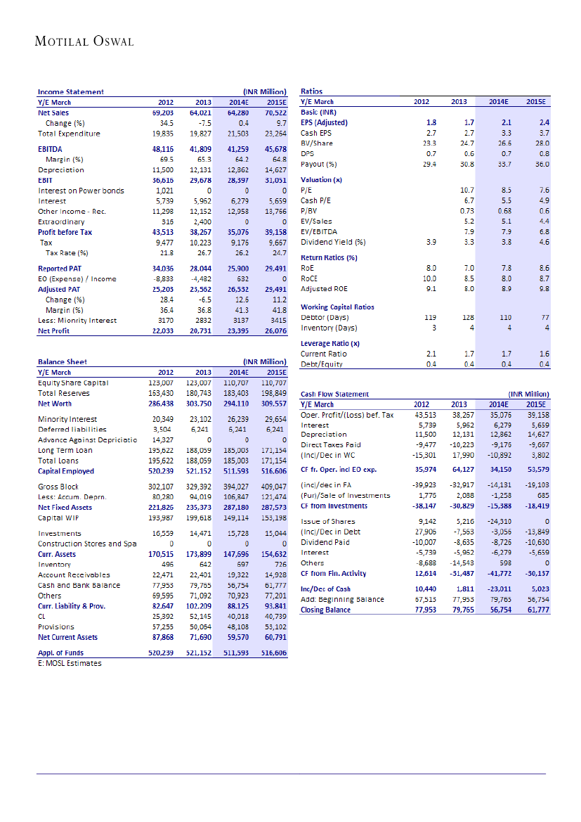 estimate PAT at INR26.5b (up 25%) for FY14 and INR29.5b (up 12%) for FY15. The