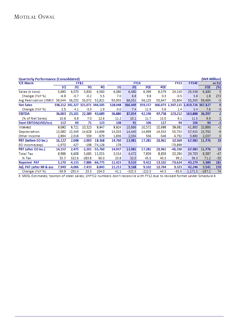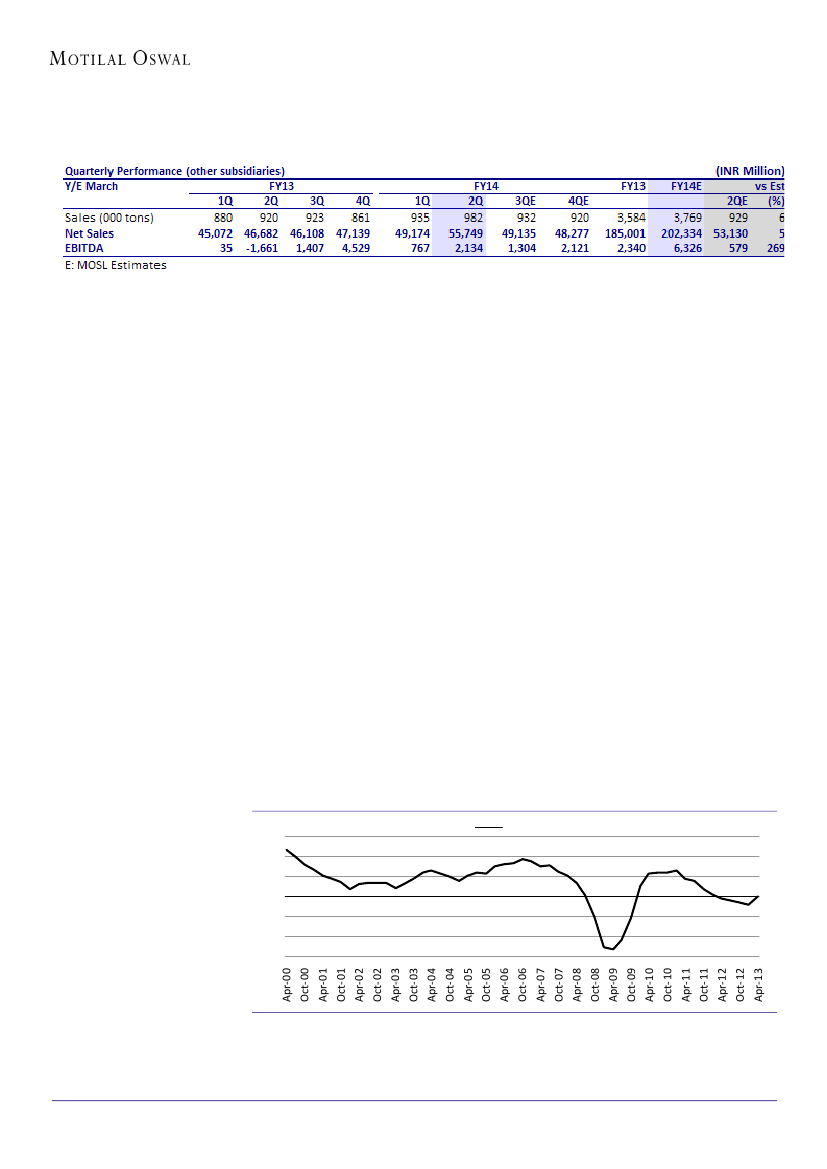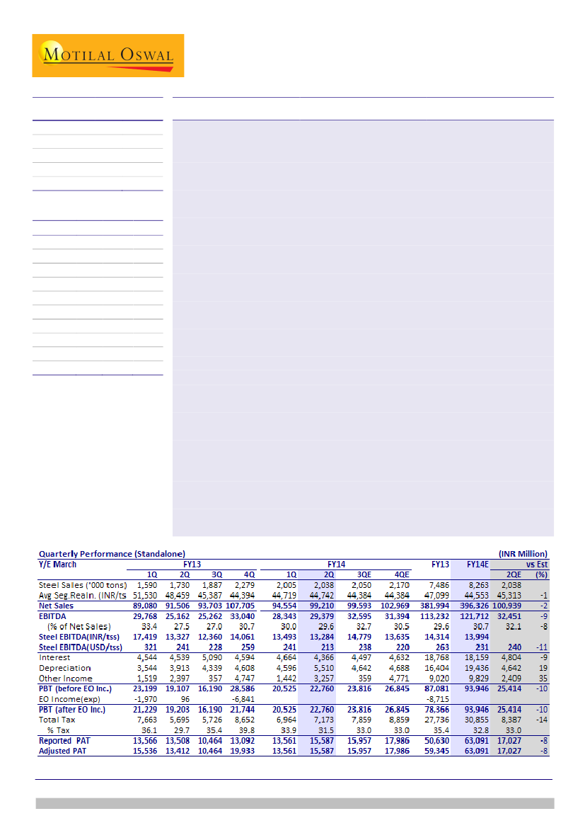 due to weak domestic demand, despite 0.7m tons of extra sales in 1HFY14. TSI has