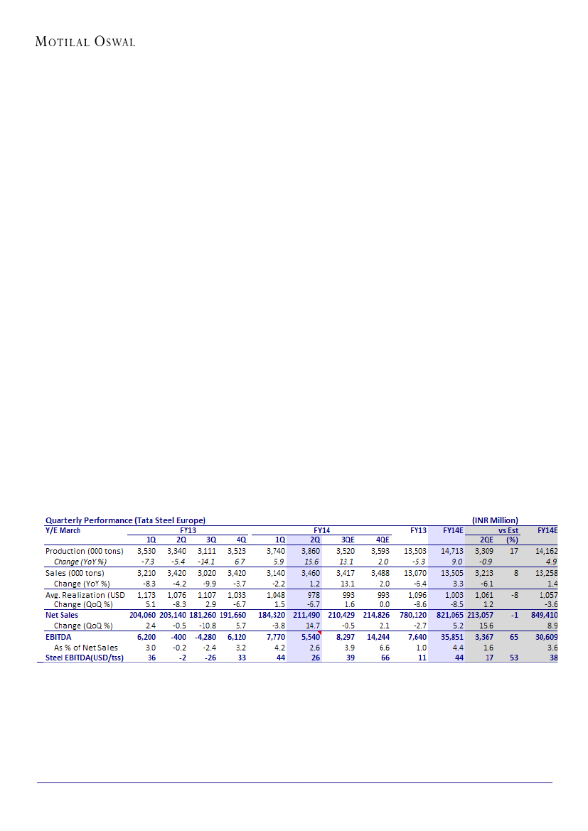 For TSE, EBITDA declined 29% QoQ to INR5.5b. EBITDA/ton declined 42% QoQ to