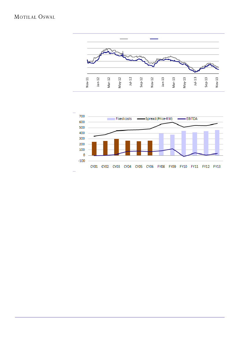projects and delays. Indian steel demand is yet to bottom out. We are not sure if