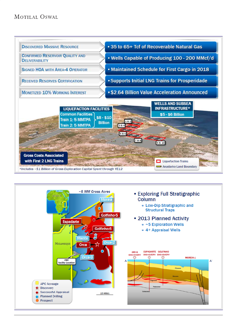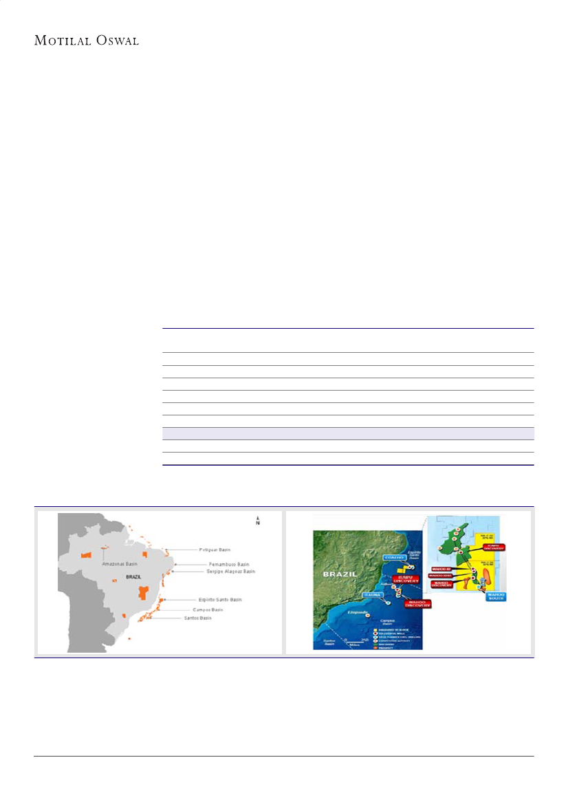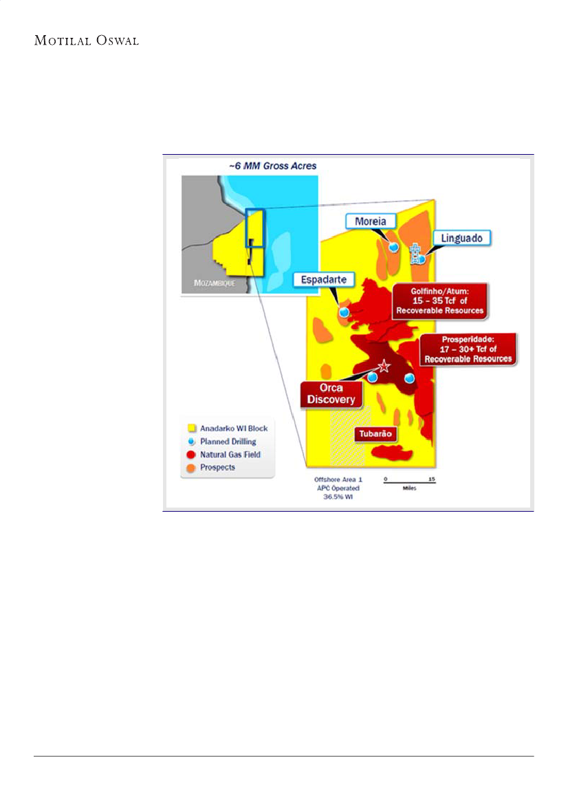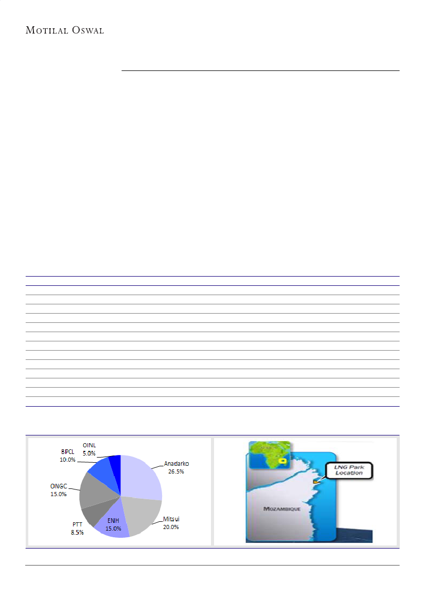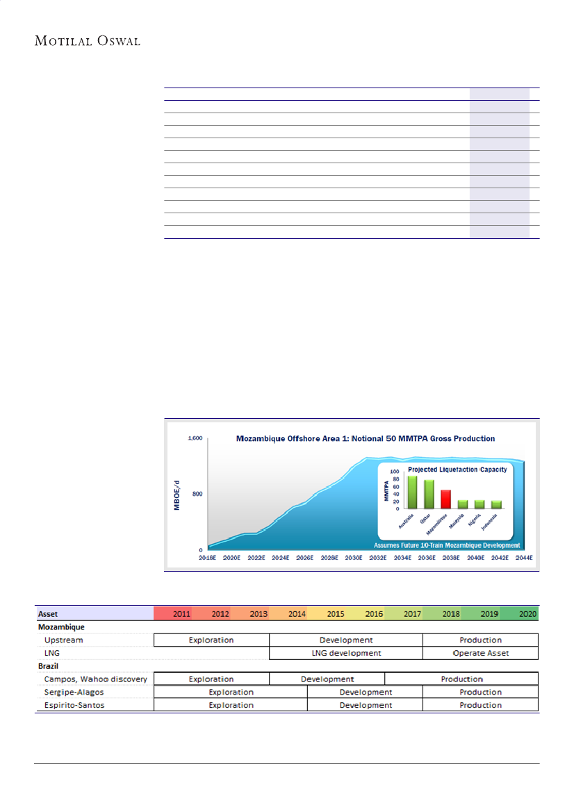 value Wahoo reserves (150-200mmbbl) in Brazil at INR12/sh. Our valuation for Mozambique is at ~30% discount