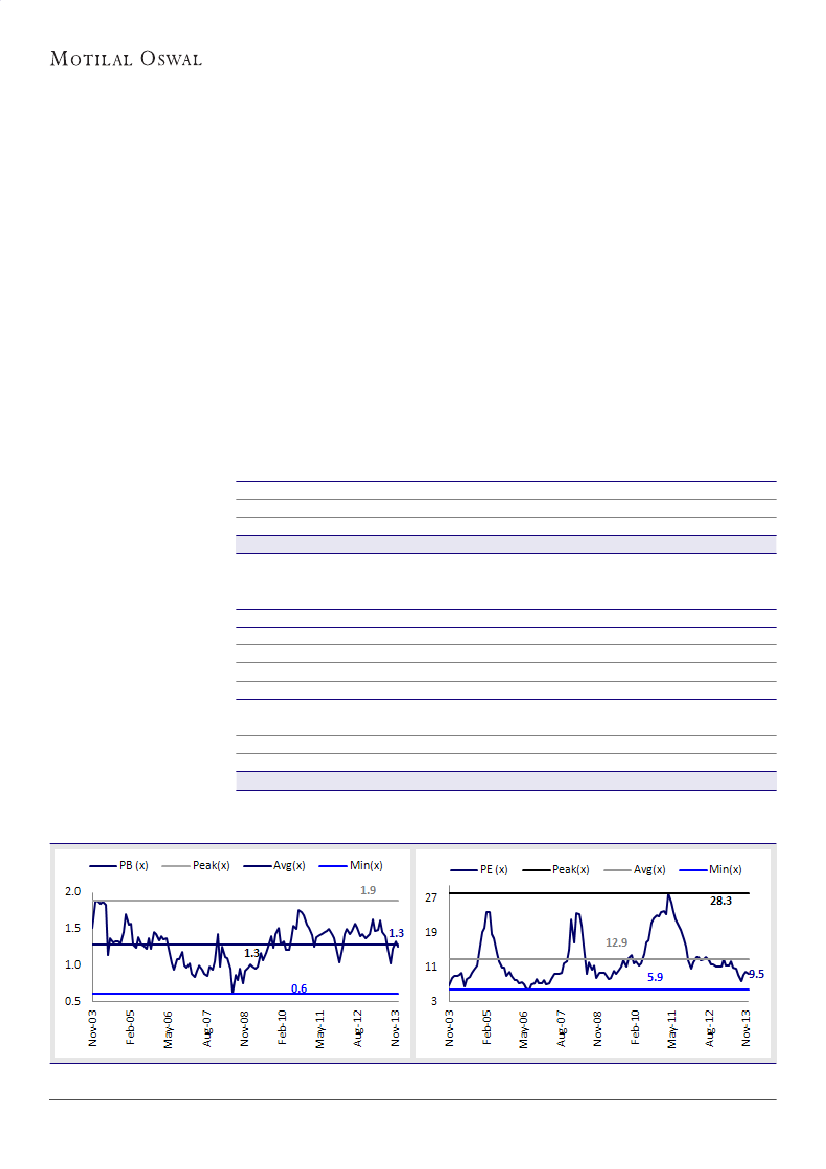 FY15E EPS of INR37.4 and 0.5x FY15E adjusted BV. Maintain