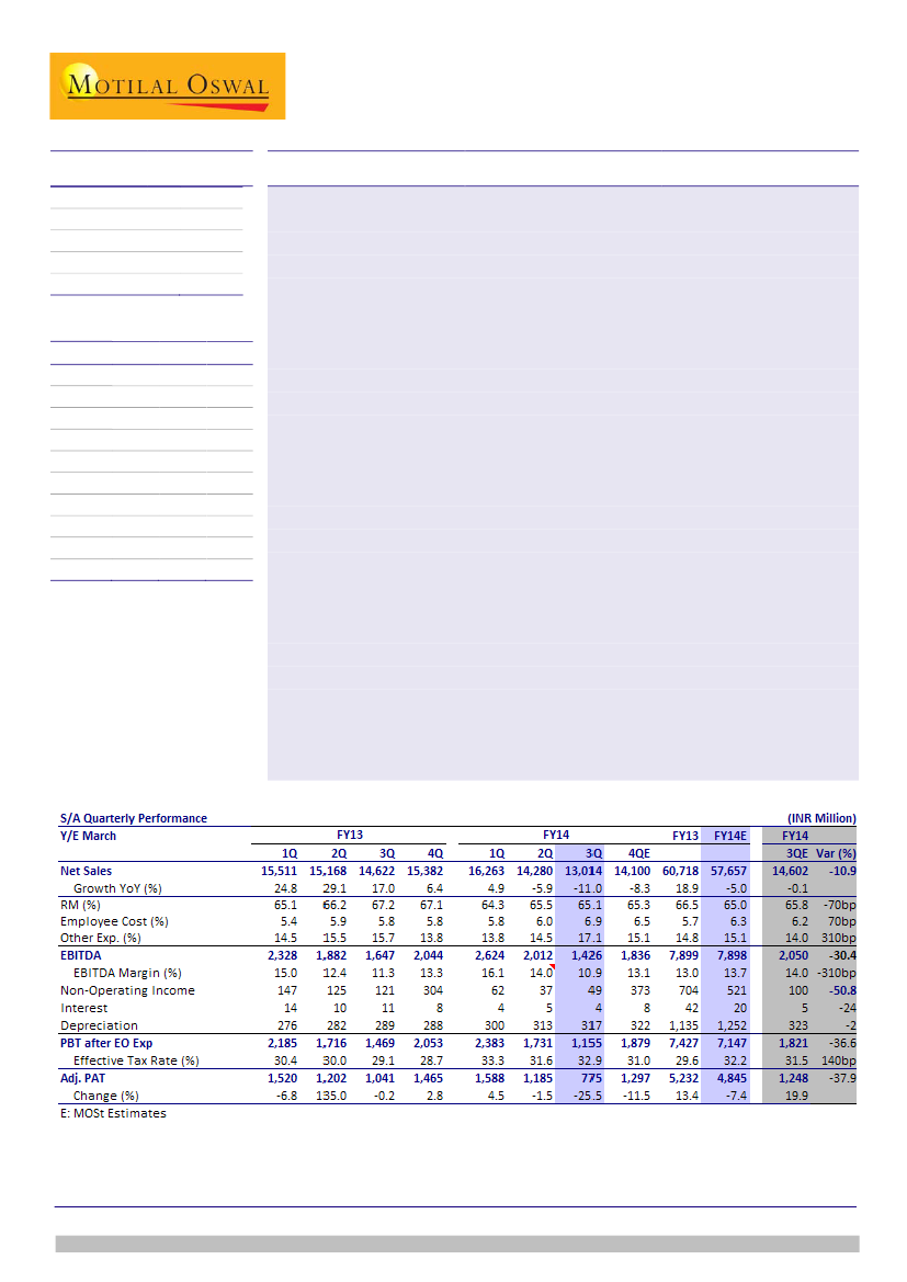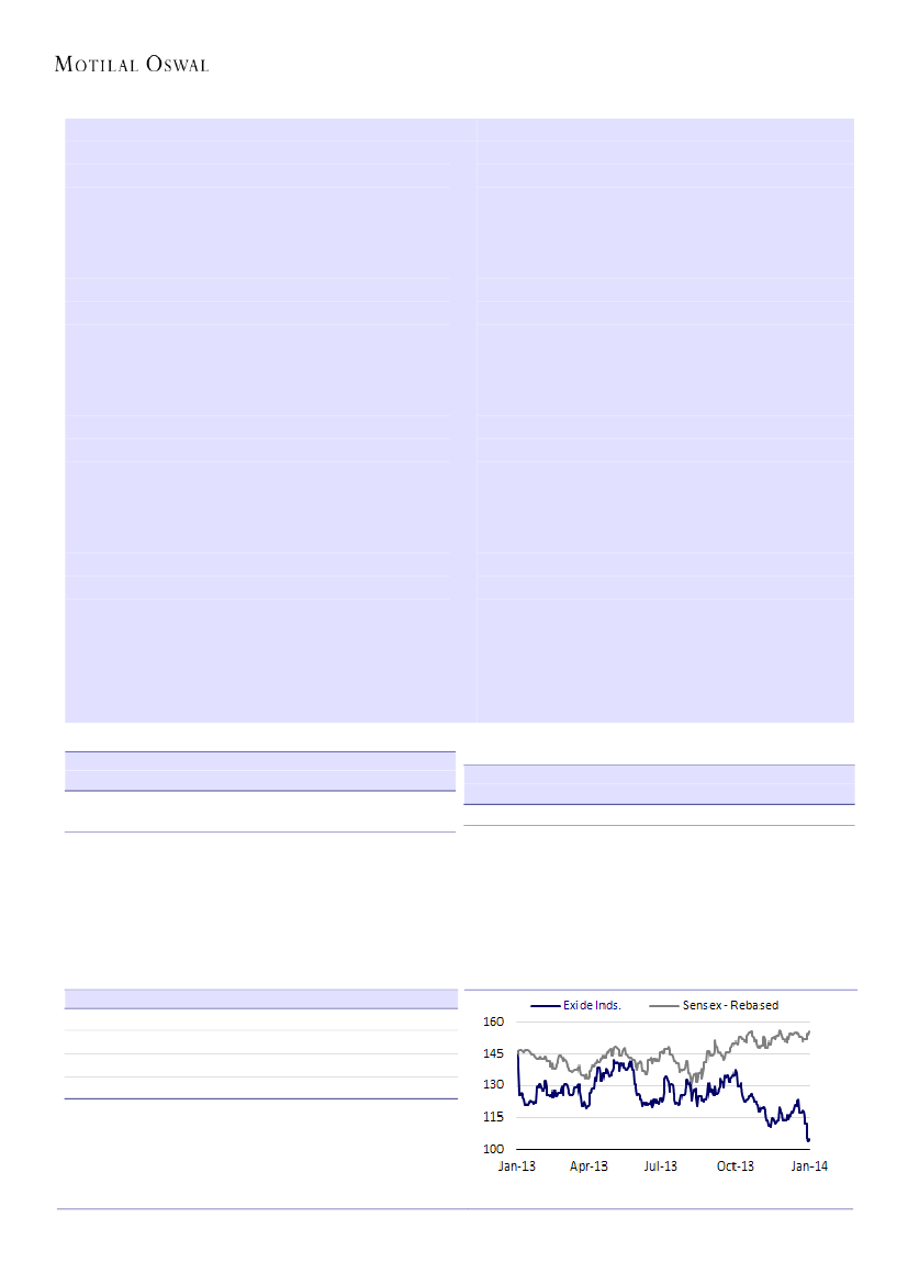 Exide’s (EXID) 3QFY14 performance was sharply below our expectation, led by weak