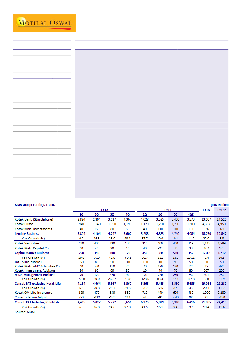 KMB’s consolidated PAT for 3QFY14 grew 2% YoY (lowest since 1QFY10) to INR5.9b