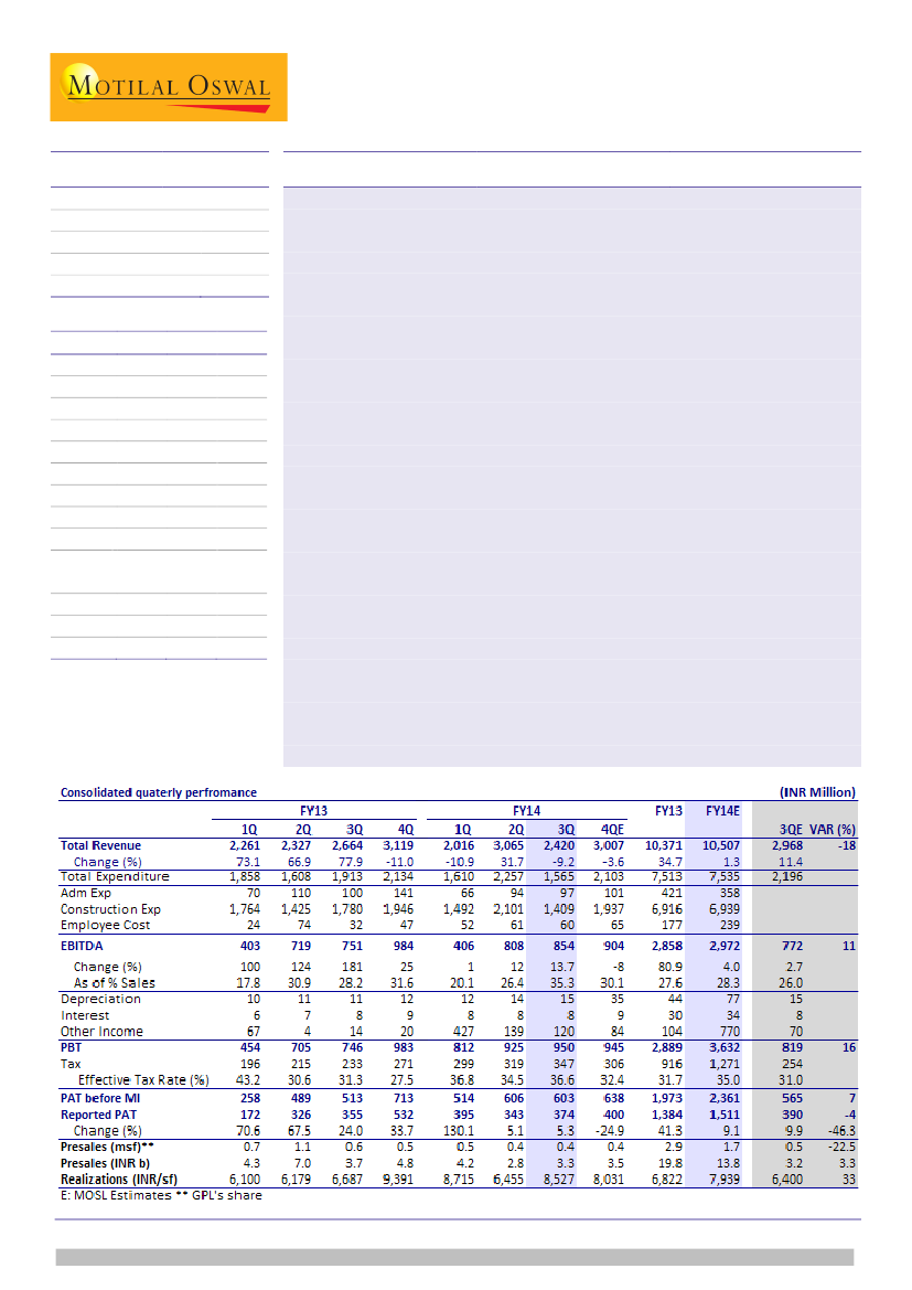 context of a seasonally strong quarter. GPL’s stake of 3QFY14 pre-sales stood at