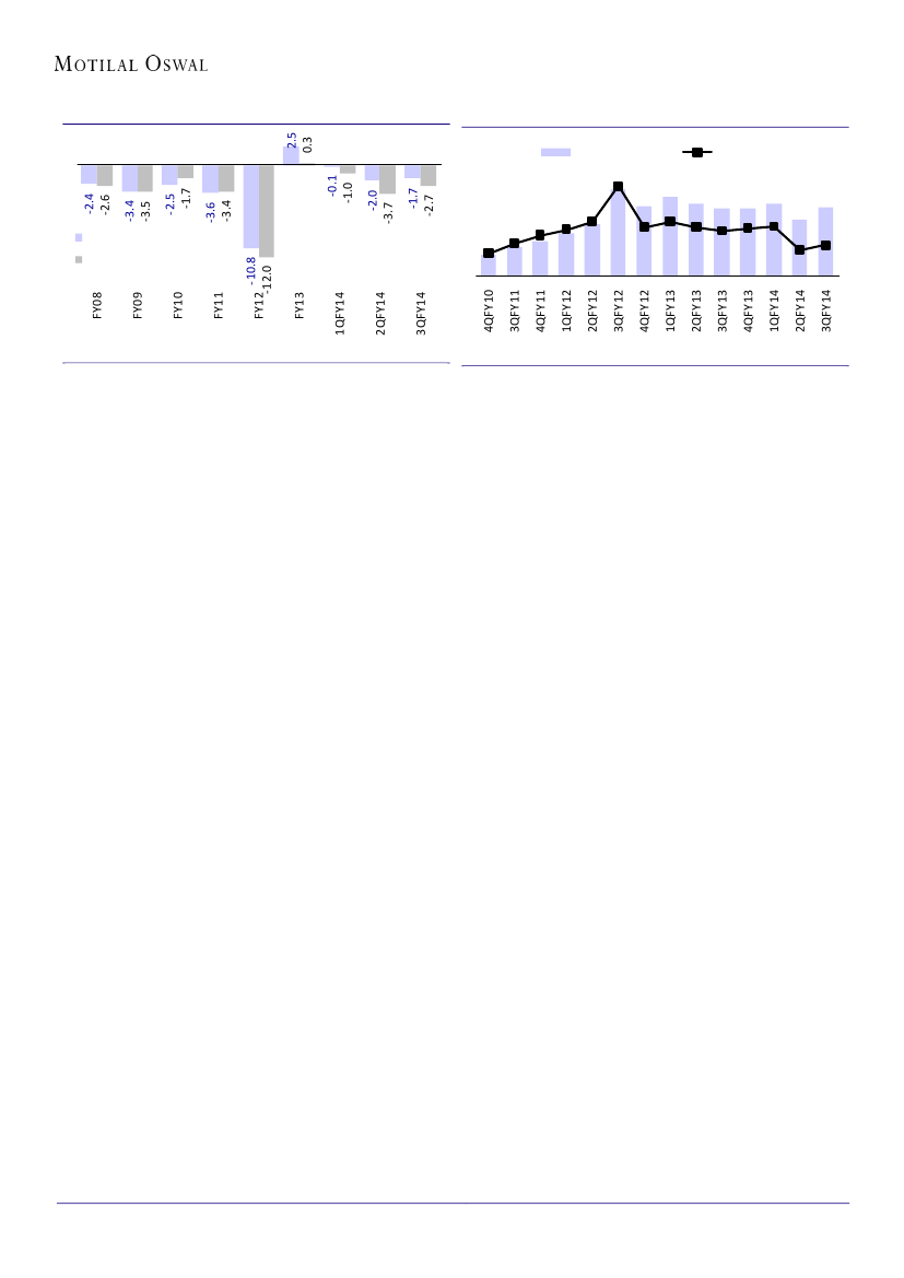 (OCF) in 3QFY14 of negative INR1.7b, which was impacted by non-regular