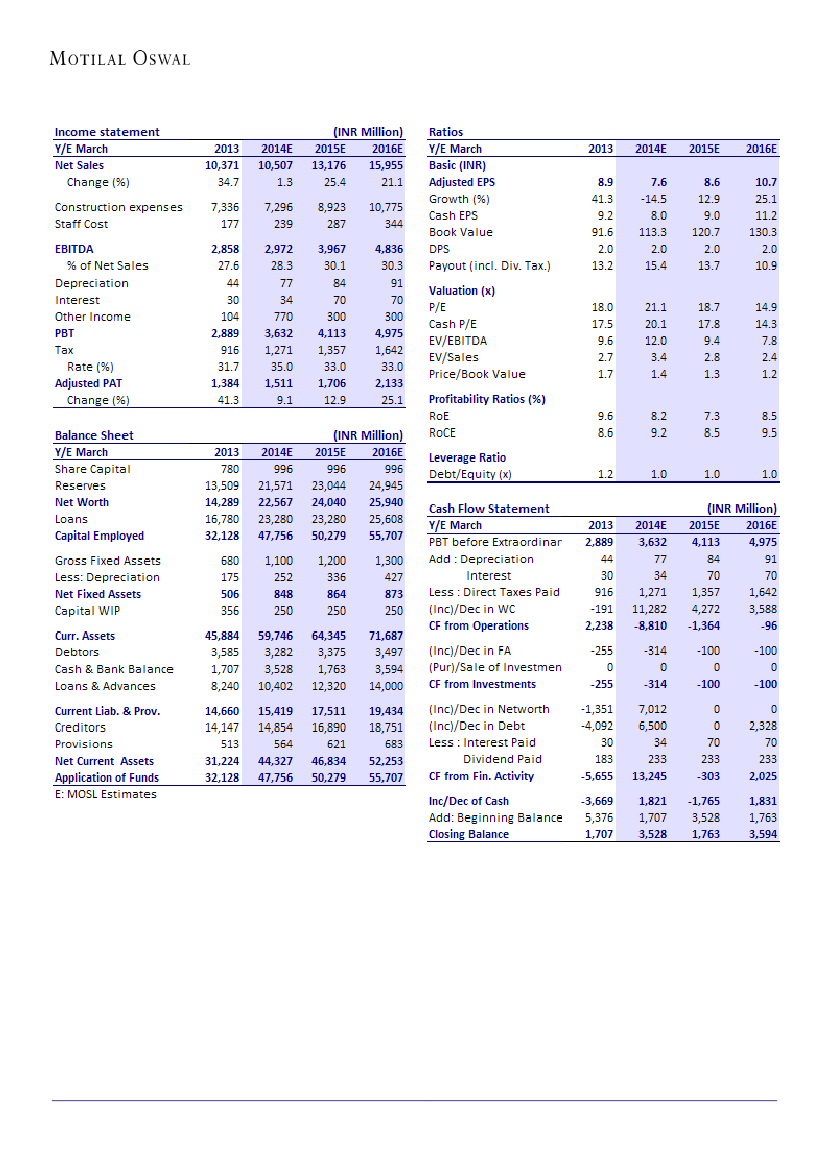 0.39msf (INR3.3b) v/s 0.43msf (INR2.7b) in 2QFY14 and 0.56msf (INR3.7b) in