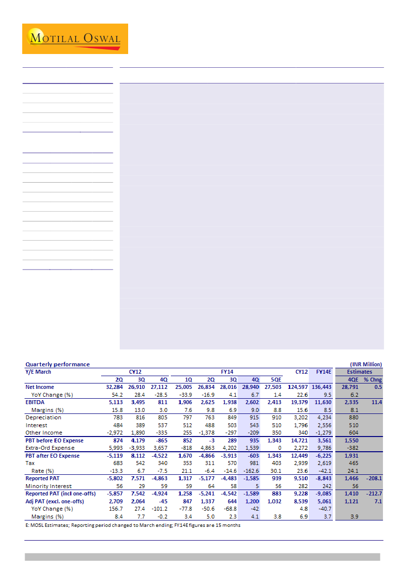 partly recovered in FY16E through site transfers. Based on 4QFY14 result, we